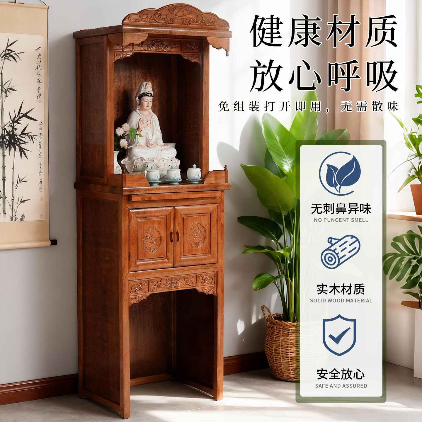 📚 佛龛新中式立柜神台供桌家用菩萨供奉台佛像供座客厅上供一体佛柜