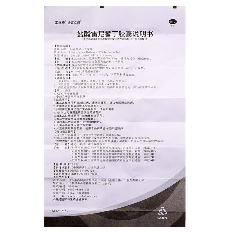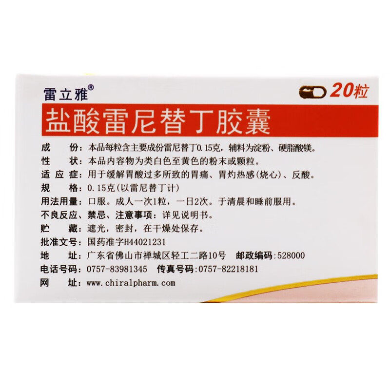 📚 雷立雅 盐酸雷尼替丁胶囊 用于缓解胃酸过多所致的胃痛 胃灼热感