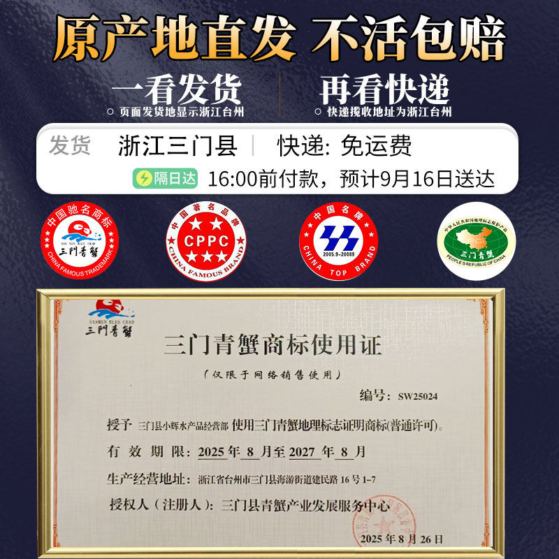 📚 【包活】三门青蟹鲜活特大全母红膏蟹海产黄油蟹肉蟹红鲟越南礼盒