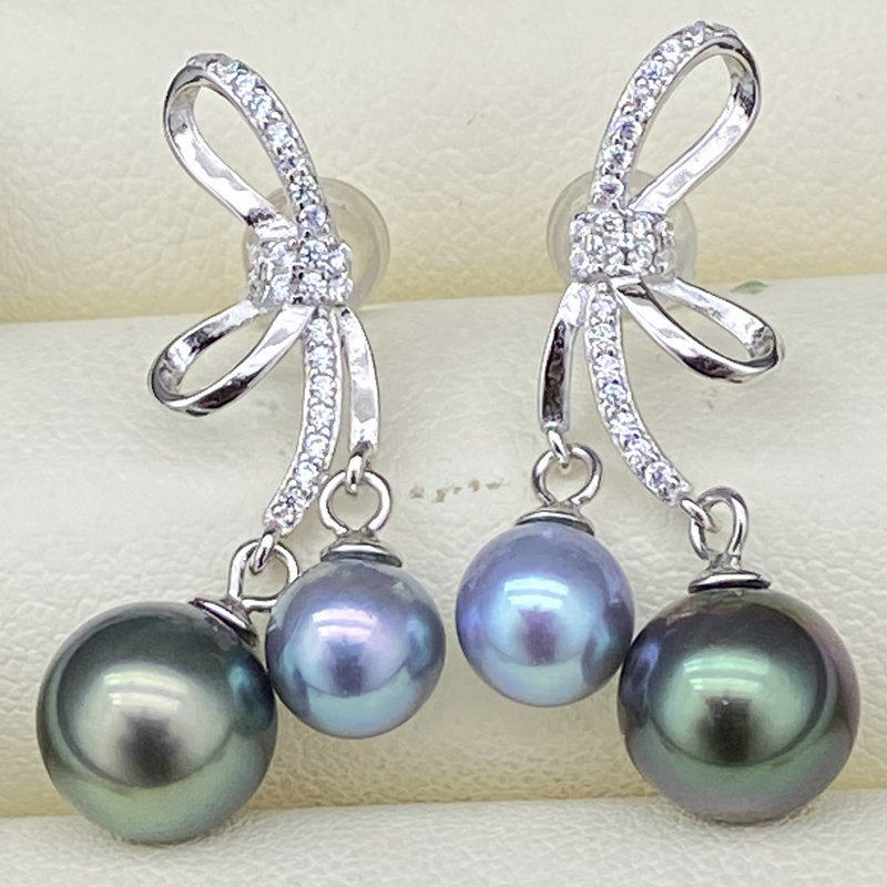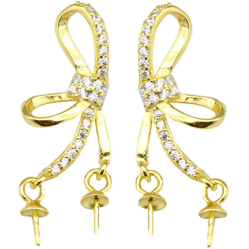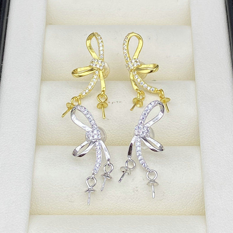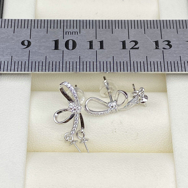 📚 源头工厂s925纯银珍珠耳环空托配件diy双珠款耳钉韩版耳坠蝴蝶结