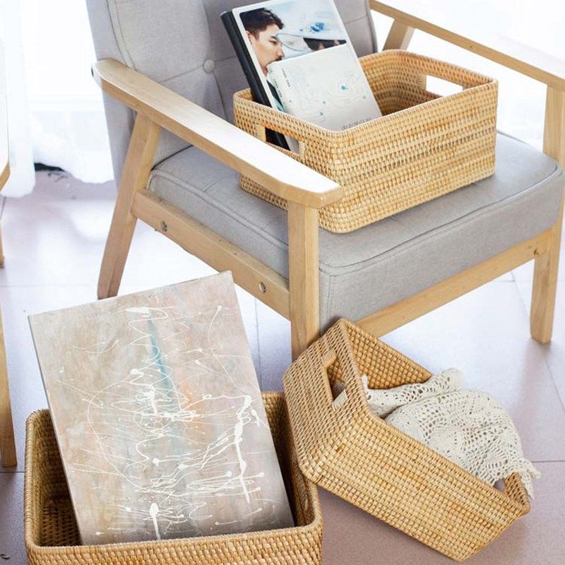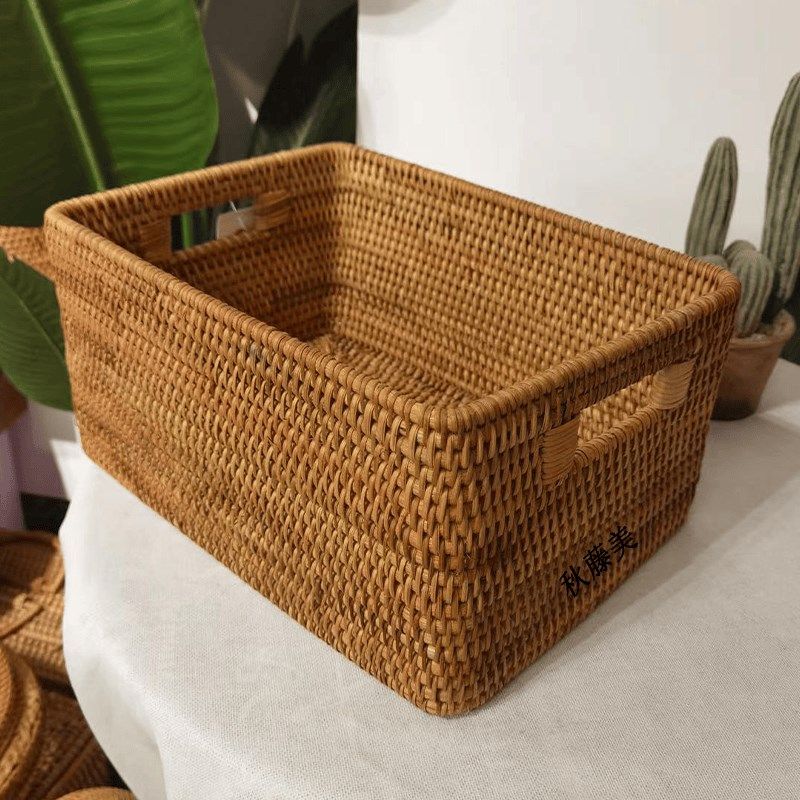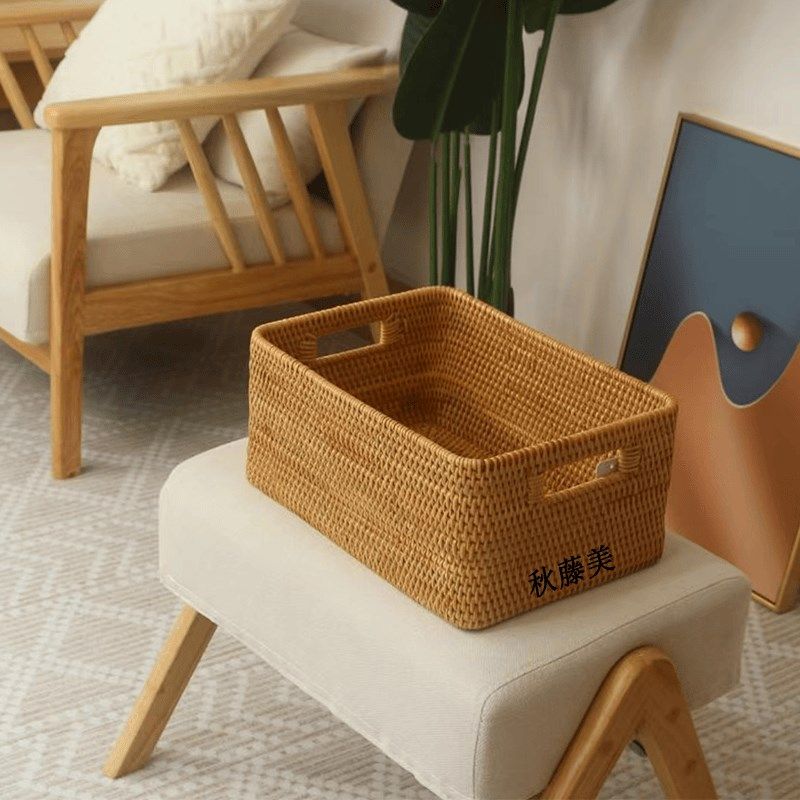 📚 T高档越南真藤手工编织居家茶几杂物长方形收纳筐桌面杂物编制篮