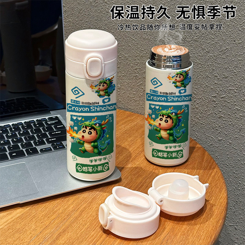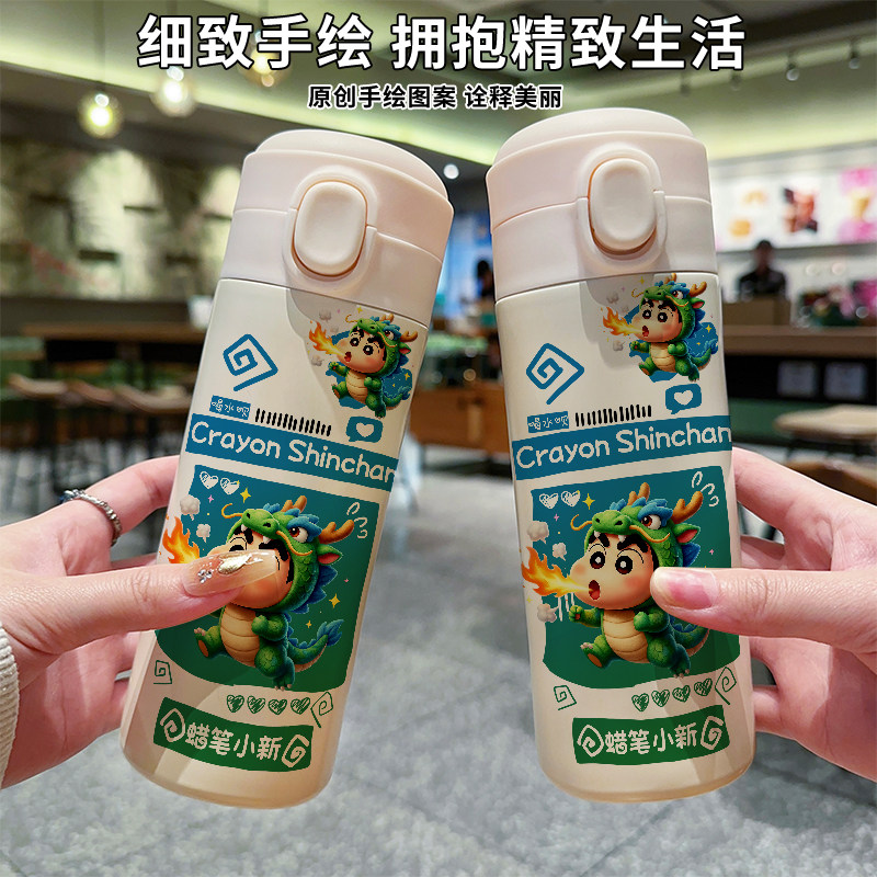📚 蜡笔小新卡通保温杯十二生肖304不锈钢吸管水杯便携小巧水壶上学