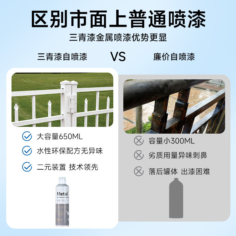 📚 三青漆金属防锈白色自喷漆油漆改色栏杆旧铁门翻新专用免除锈防腐