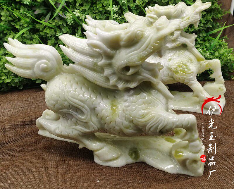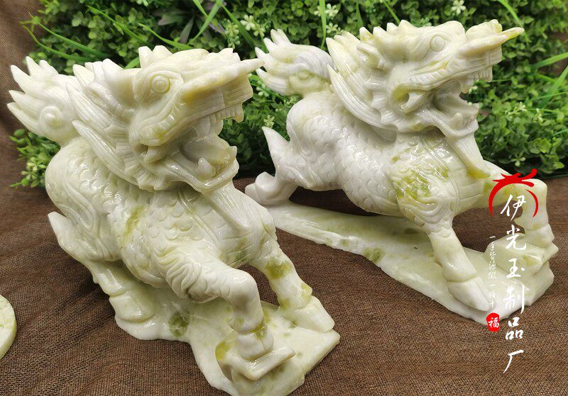 📚 天然蓝田玉岫玉麒麟摆件招财进宝玉石麒麟摆饰办公室开业礼品摆设