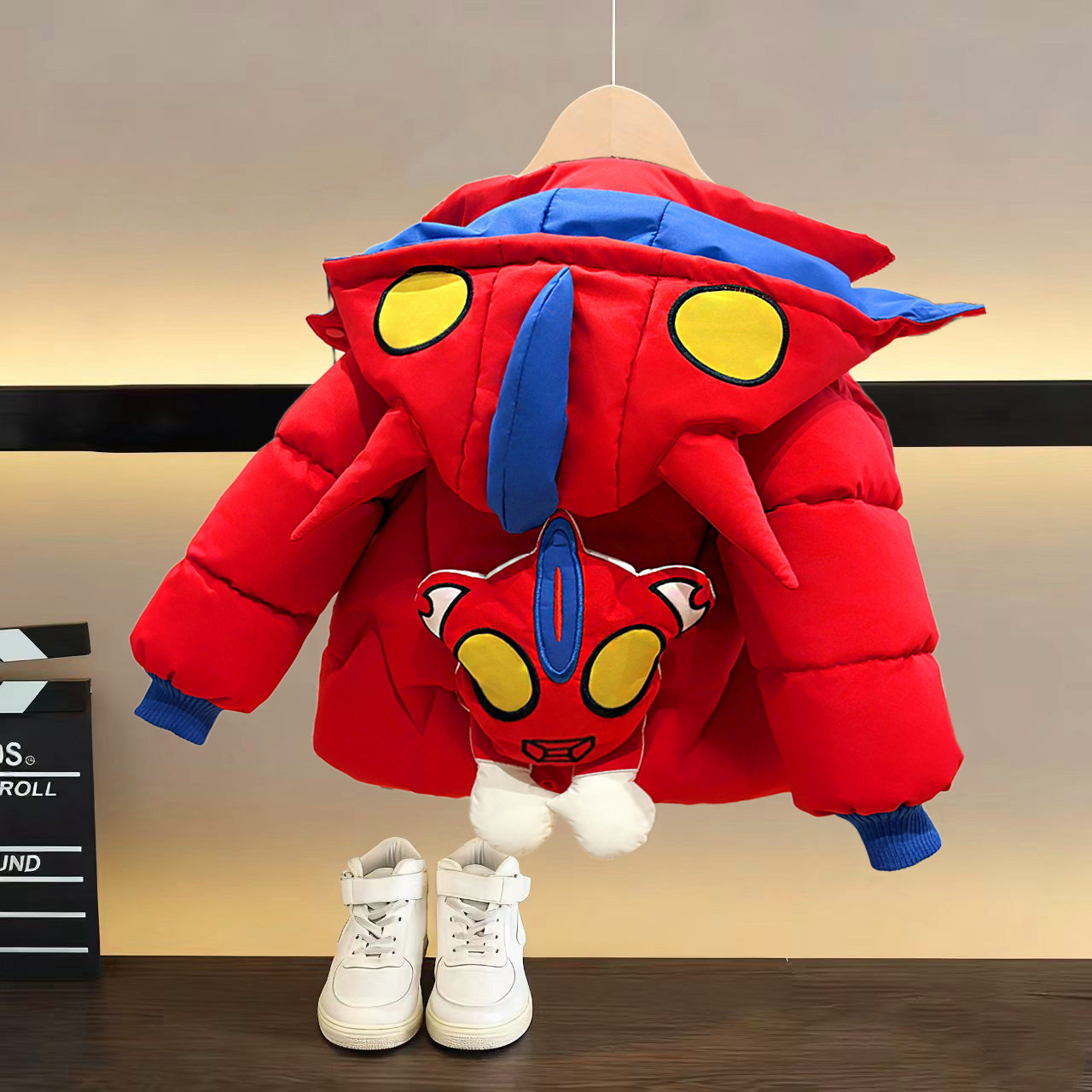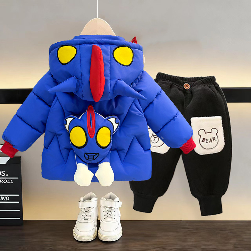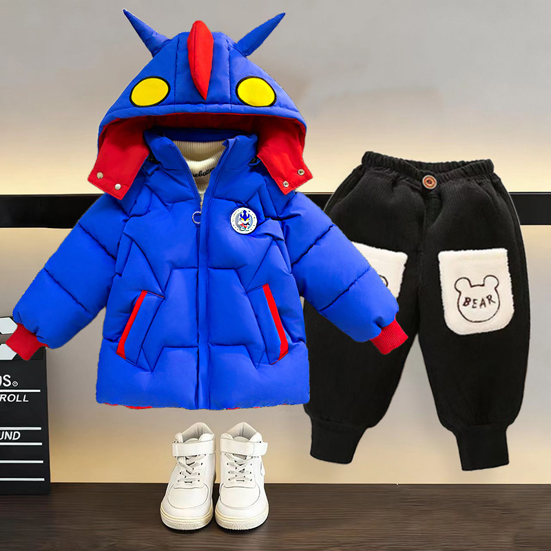 📚 男童卡通儿童棉服冬季加绒加厚外套男女宝宝保暖羽绒棉衣两件套潮