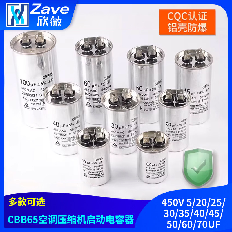 📚 CBB65空调压缩机启动电容器450V 5/20/25/30/35/40/45/50/60/70UF