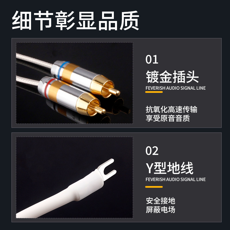 📚 杨阳 发烧唱臂信号线双绞编镀银双莲花带地线LP黑胶RCA唱机音频线