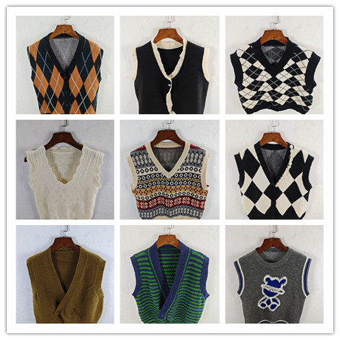 📚 古着秋冬复古韩版宽松修身纯色图案短中长款秋冬毛衣外套马甲女