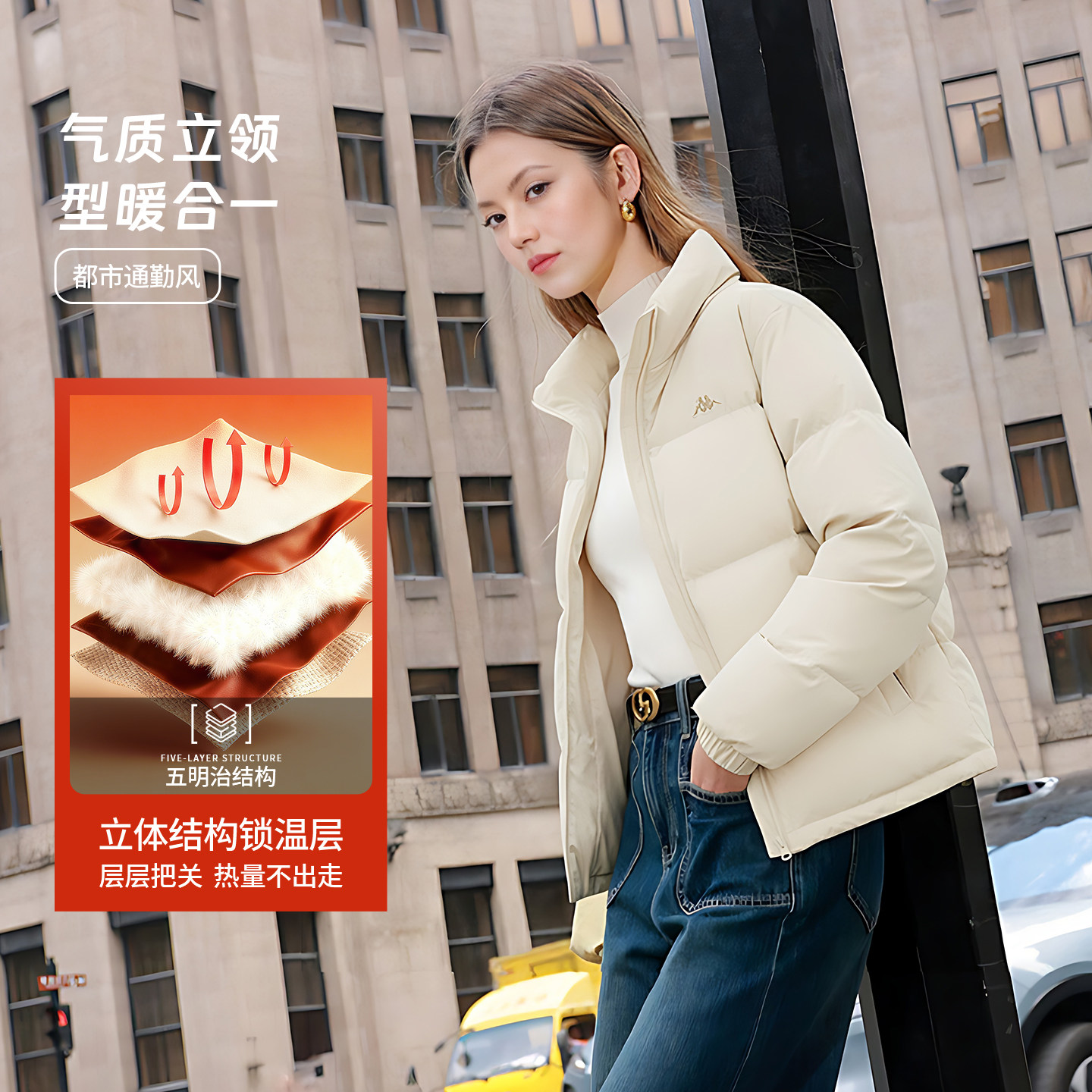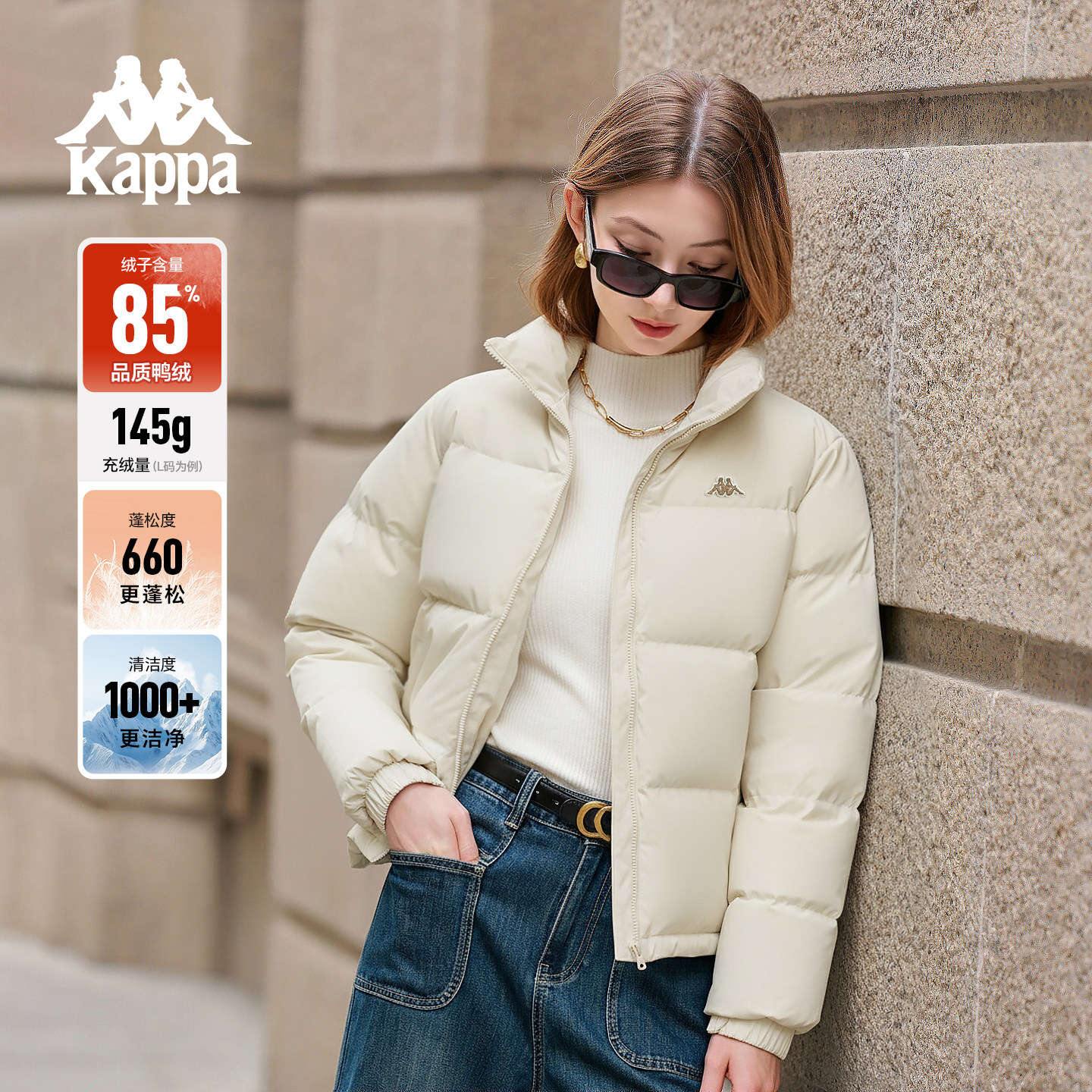 📚 Kappa卡帕背靠背运动羽绒服男新款冬季简约基础款女立领保暖外套