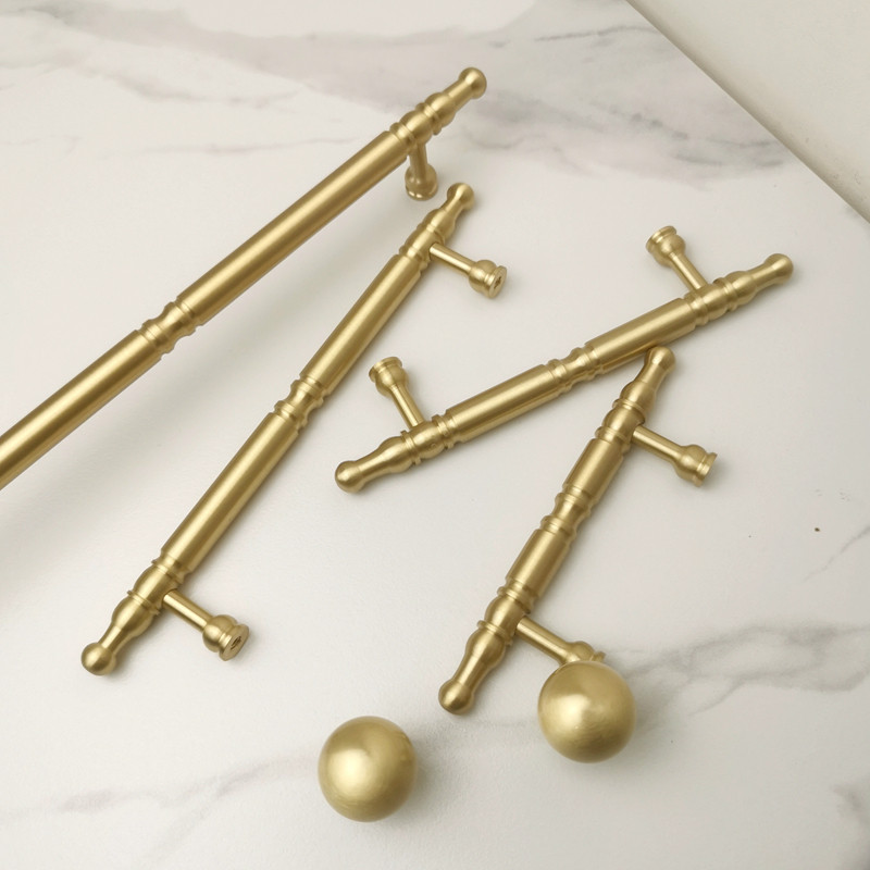 📚 欧式现代简约衣橱鞋柜门把手轻奢黄铜法式金色抽屉门纯铜小拉手