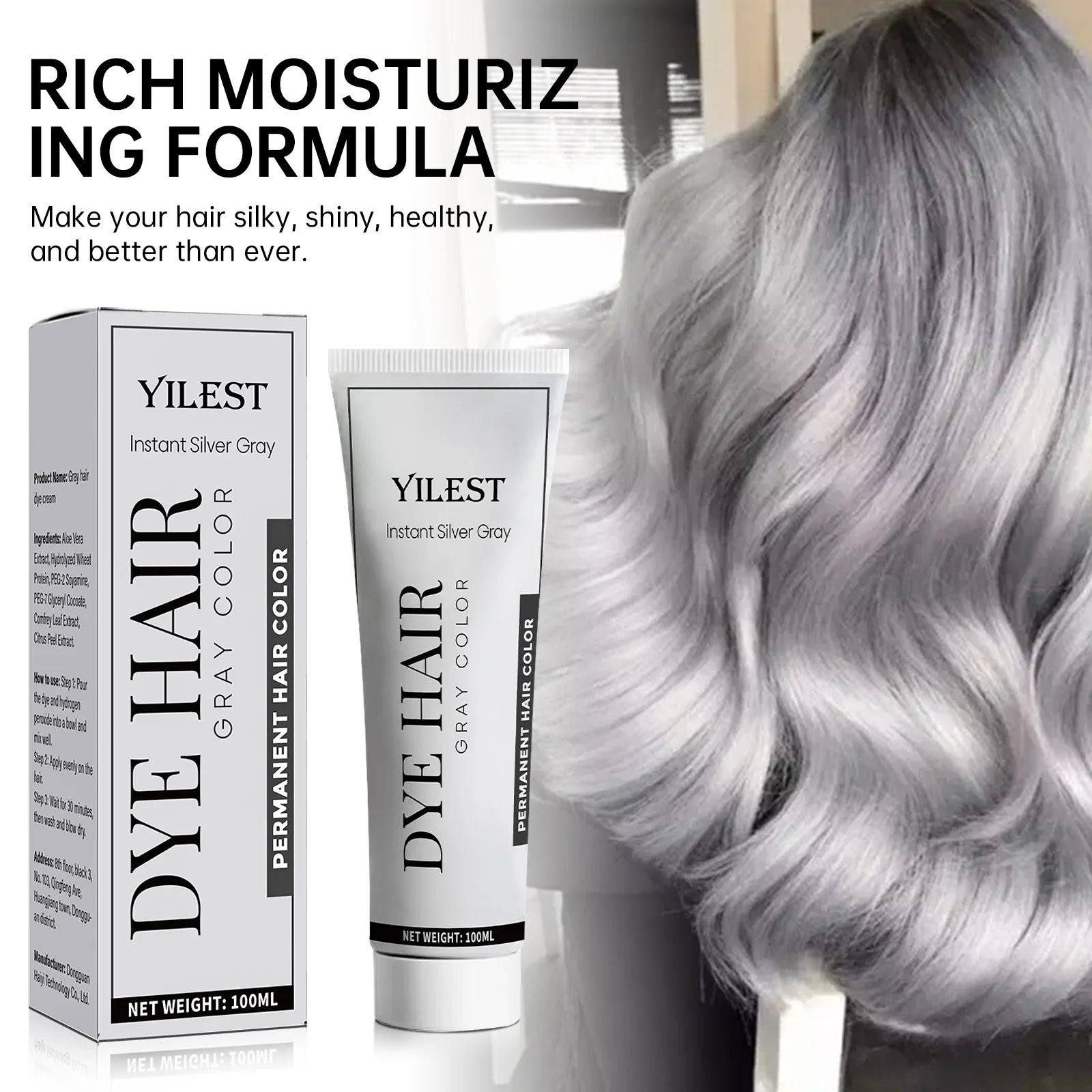 📚 100ML Sliver Grey Hair Dye Cream Smoky Style DIY Styling No