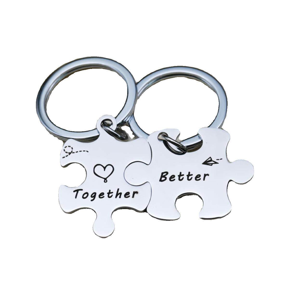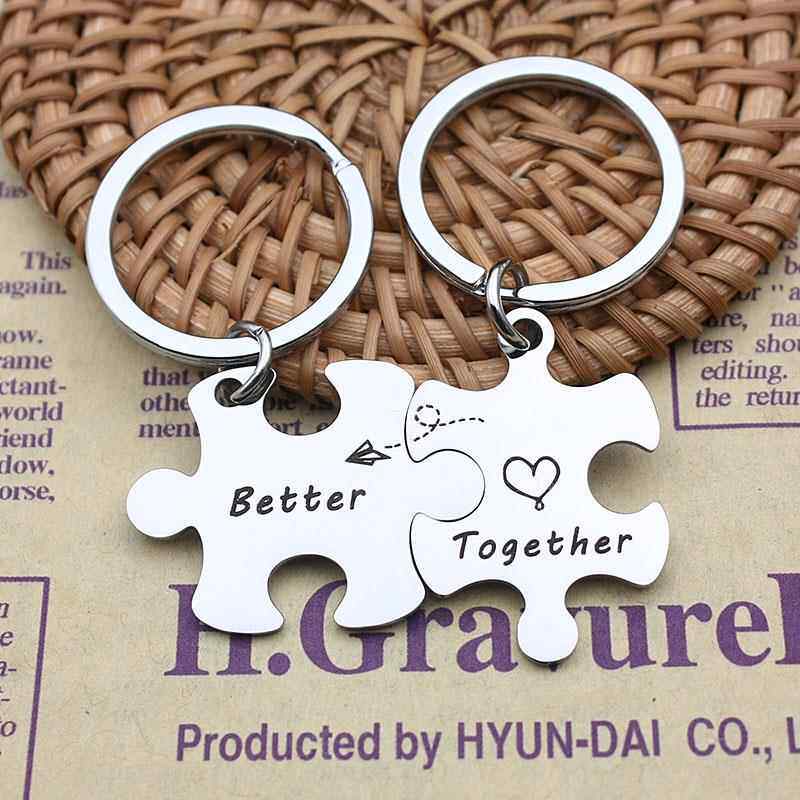 📚 个性不锈钢拼图钥匙扣可刻字定制情侣钥匙圈挂件一对创意拼图挂饰