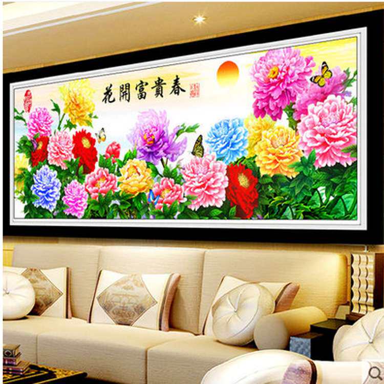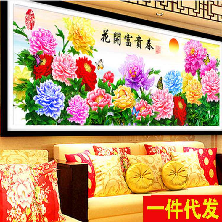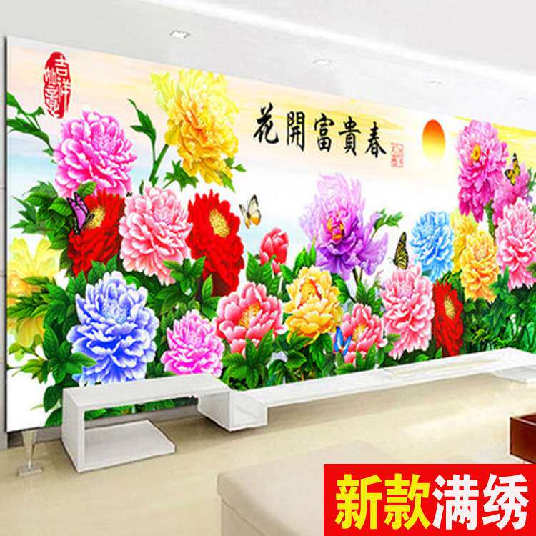📚 花开富贵春满堂彩十字绣新款客厅大幅风景山水画十字绣印花