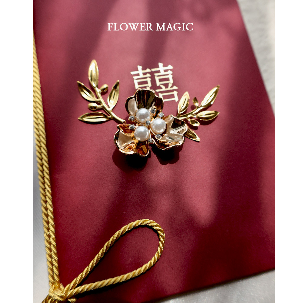 📚 【誓言卡S4】中式喜红色玉兰花新郎新娘结婚礼致辞宣誓卡宣誓本