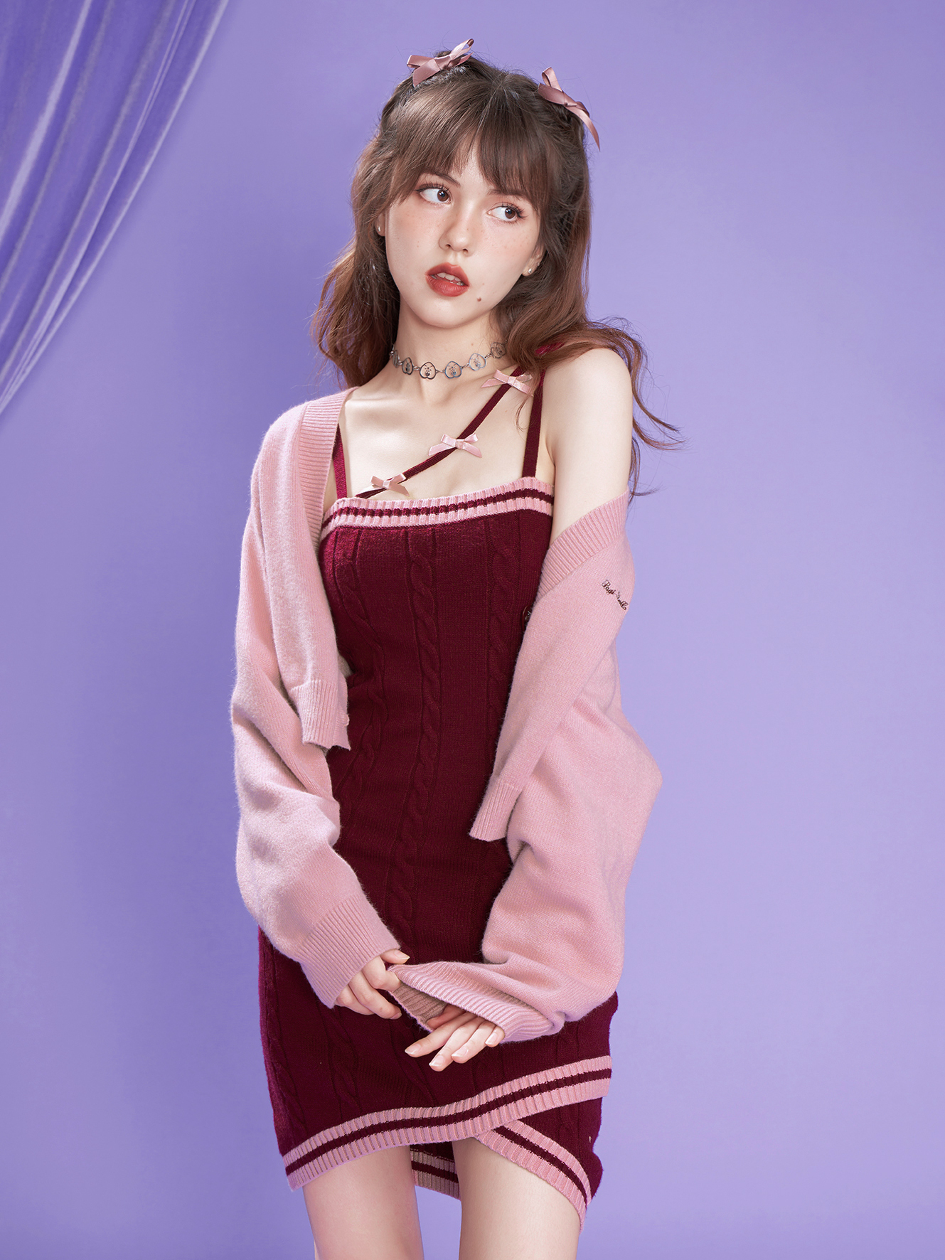 📚 SagiDolls少女斗志 #奶派甜心#粉色浪漫纯欲毛衣连衣裙套装显瘦乖