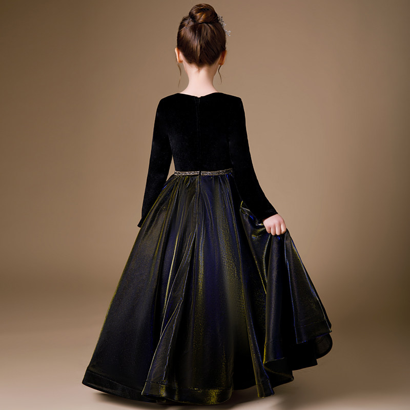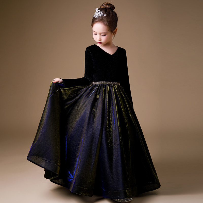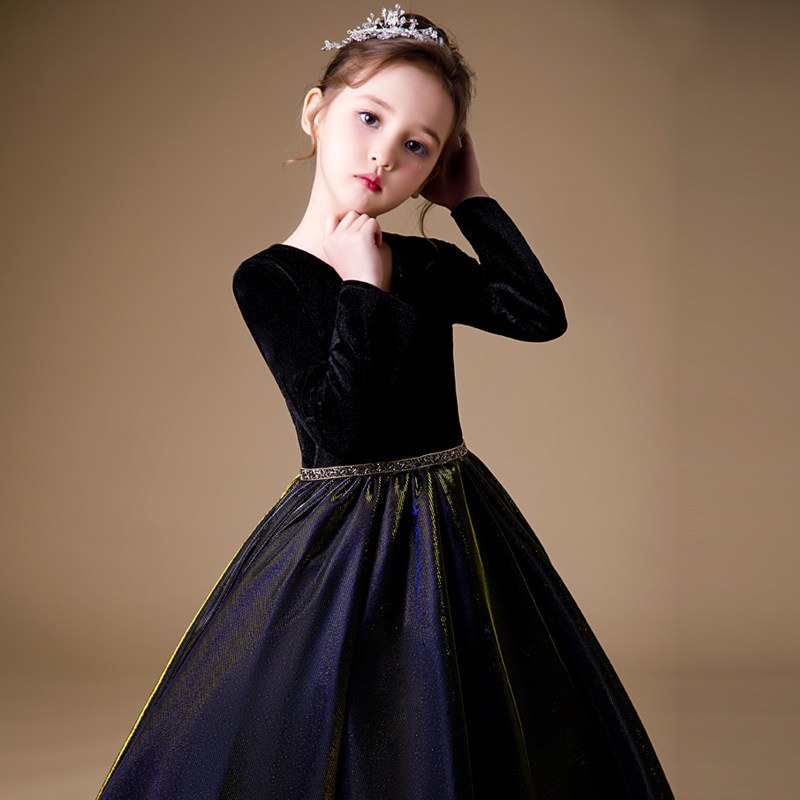 📚 儿童管弦乐合唱团丝绒长袖女大童小提琴演奏钢琴主持人演出晚礼服