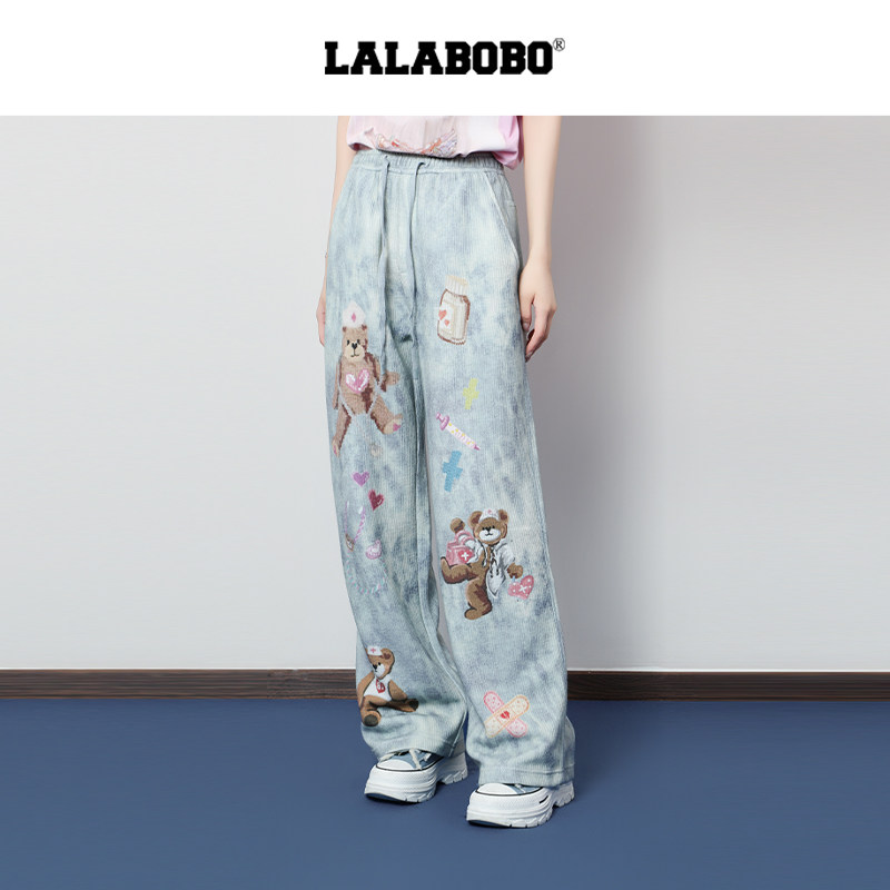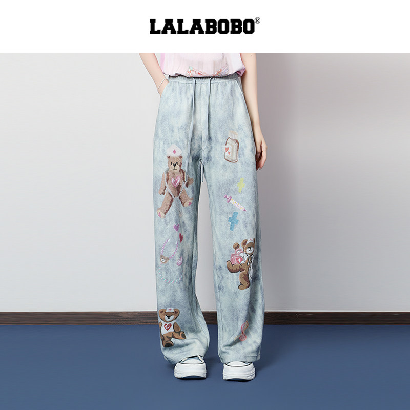 📚 【商场同款】LALABOBO仿牛仔裤25年秋新款原创印花宽松松弛感裤子