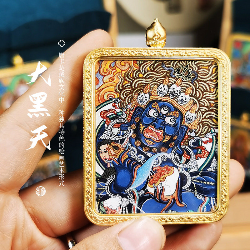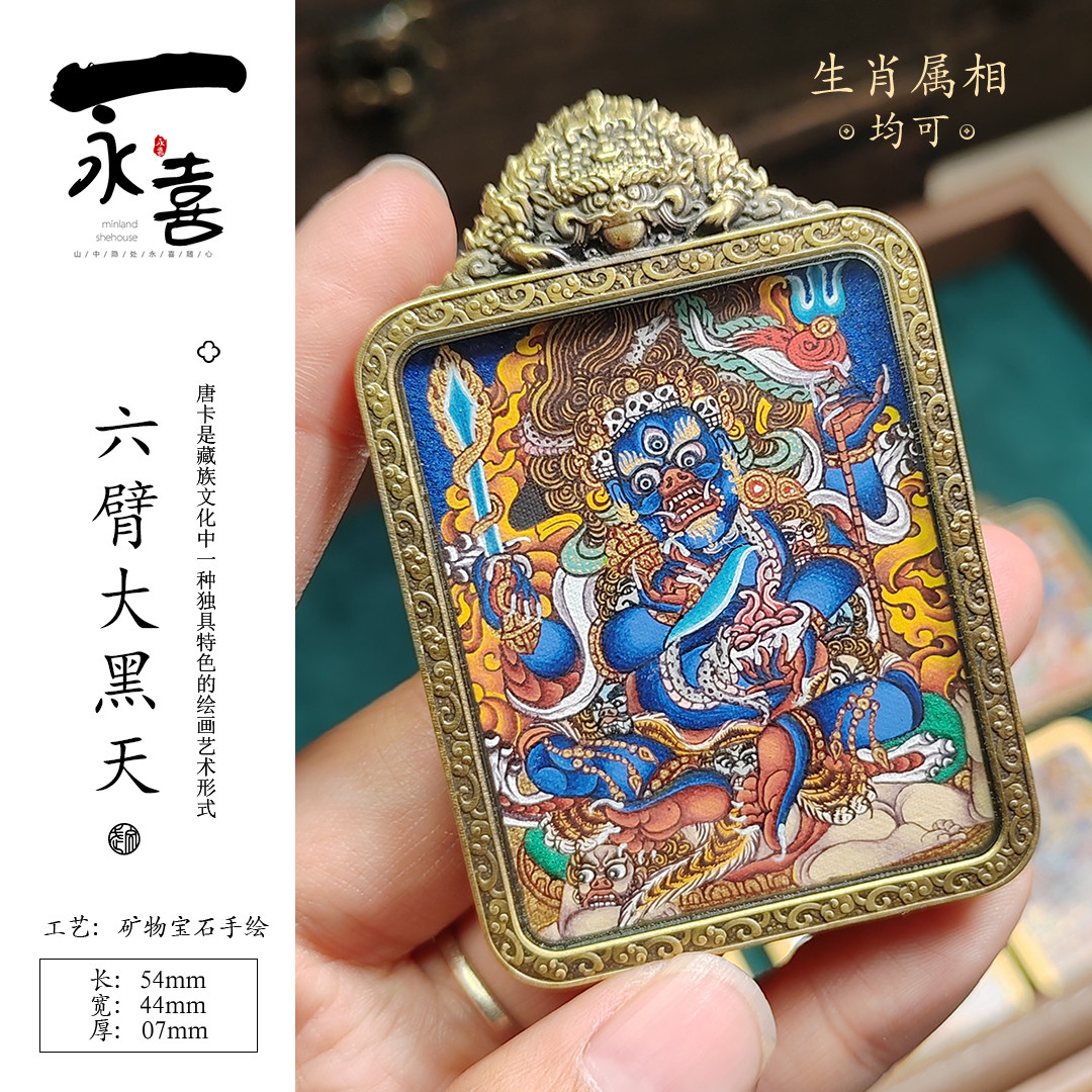 📚 西藏热贡手绘唐卡吊坠高端六臂玛哈嘎拉大黑天财神佛牌
