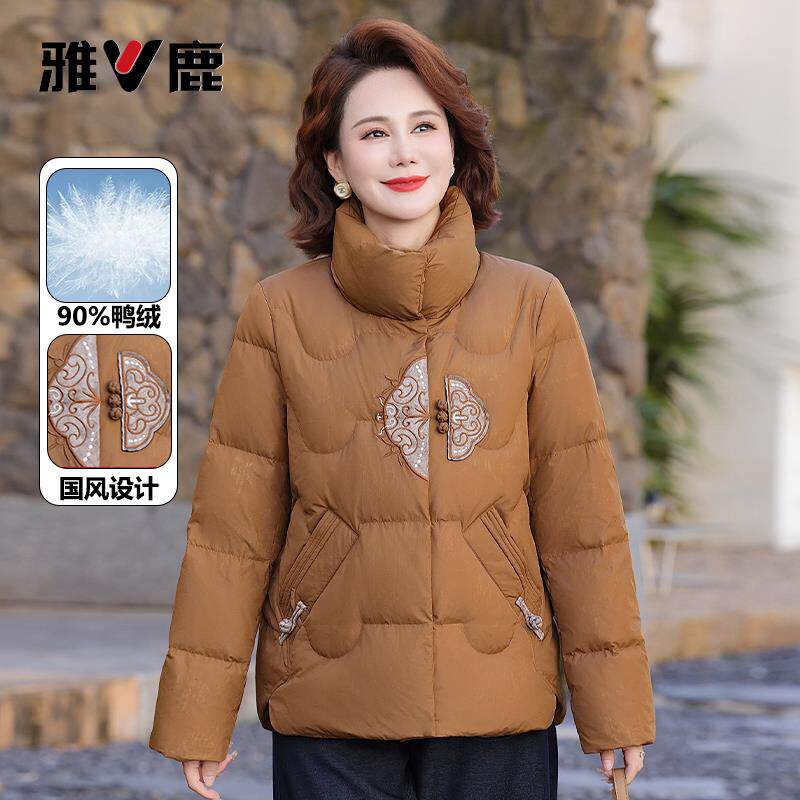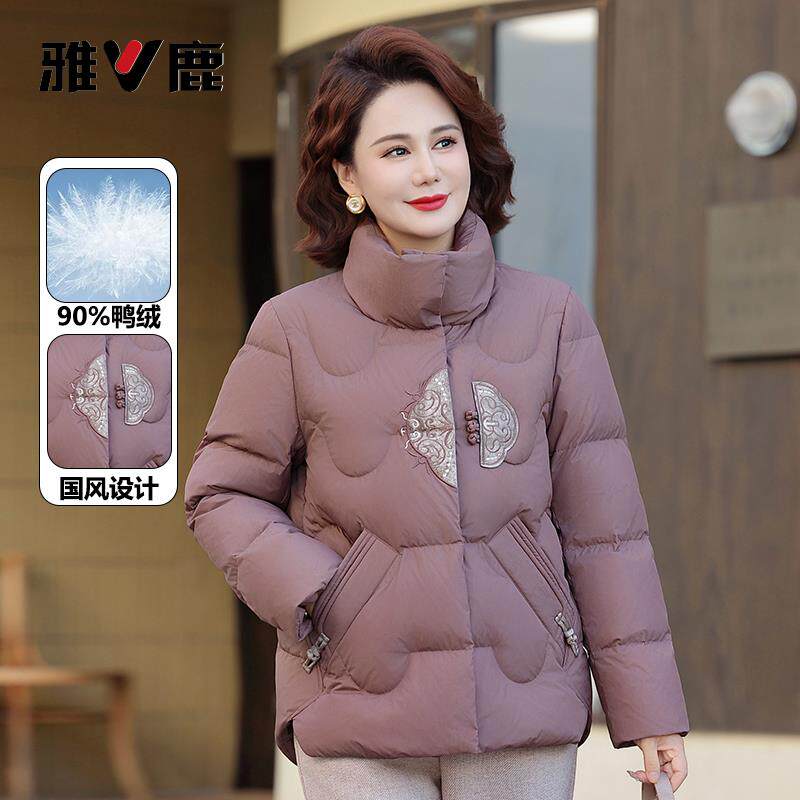 📚 雅鹿妈妈装羽绒服短款加厚喜婆婆红色冬装洋气中老年妈妈羽绒外套