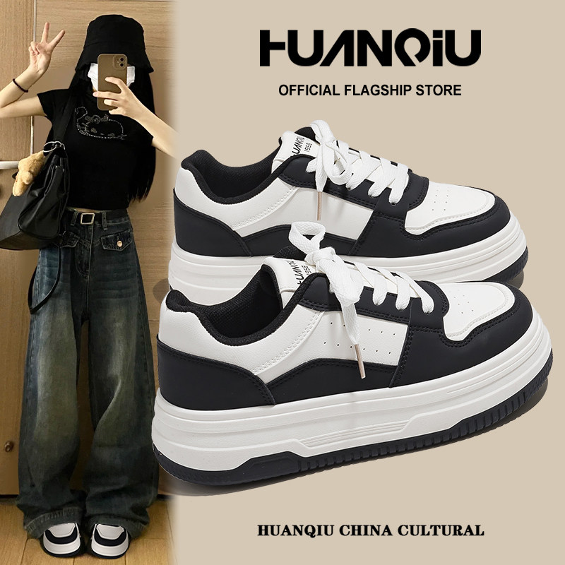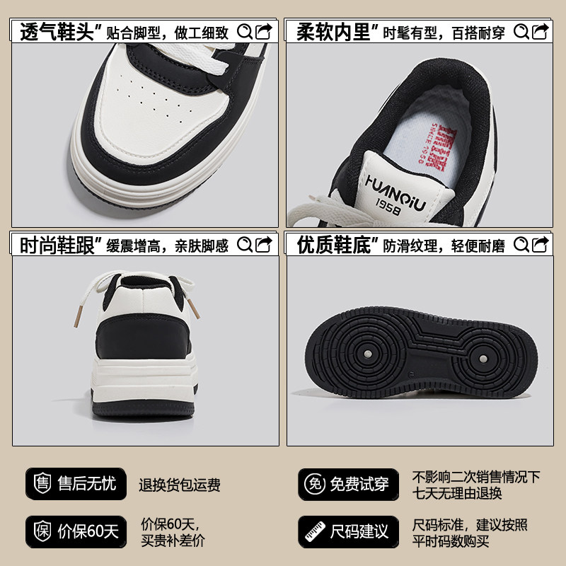 📚 环球黑白熊猫小白鞋女2026新款板鞋百搭学生校园风增高运动休闲鞋