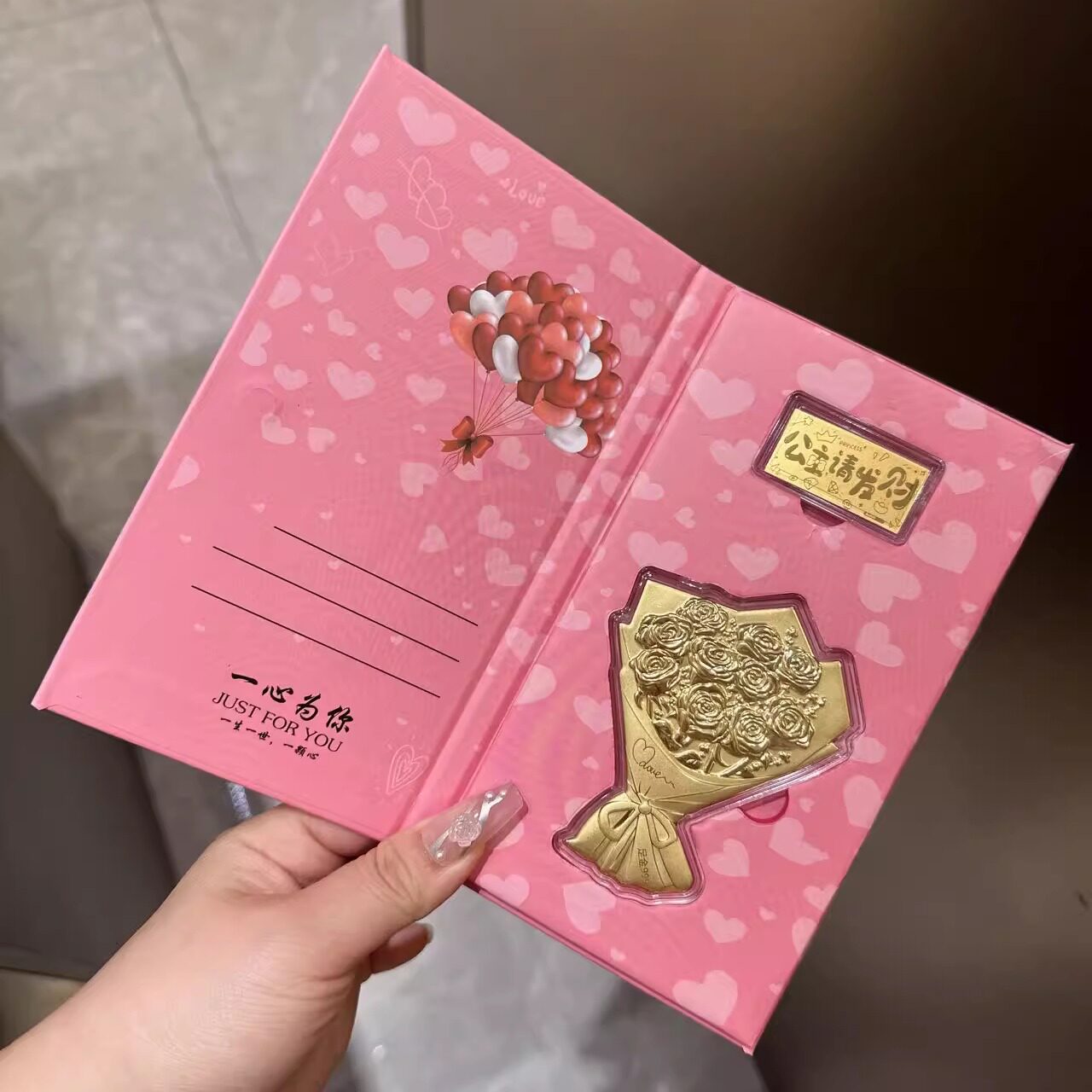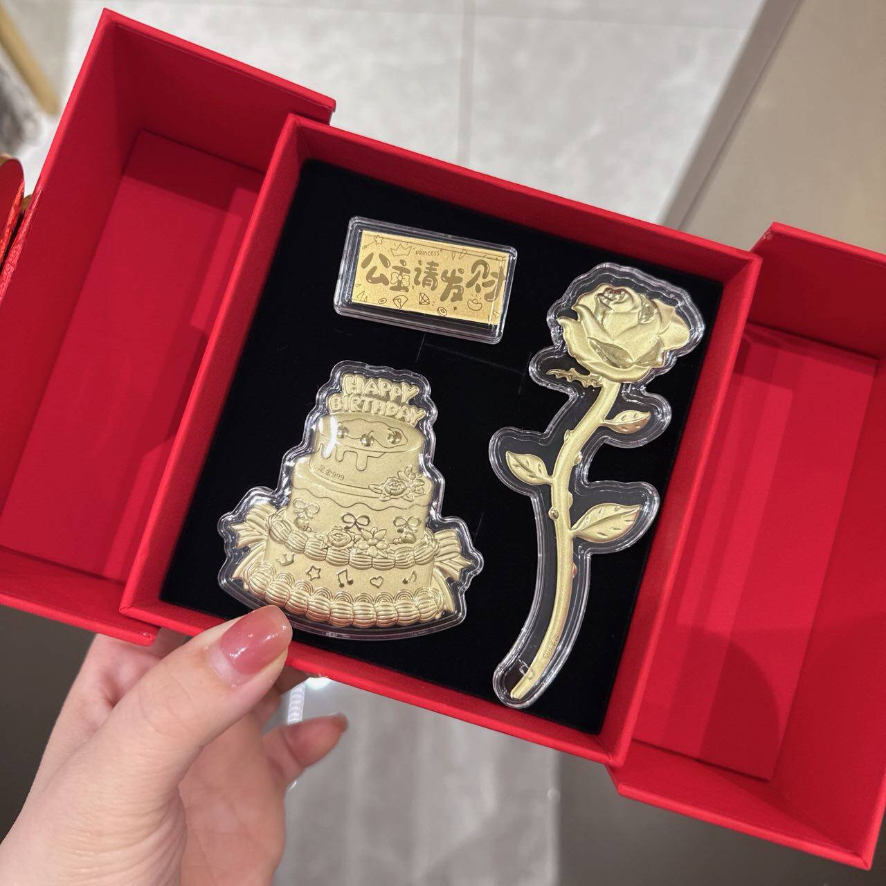 📚 水贝黄金生日快乐玫瑰花蛋糕足金七夕新婚快乐高档礼盒送女友闺蜜