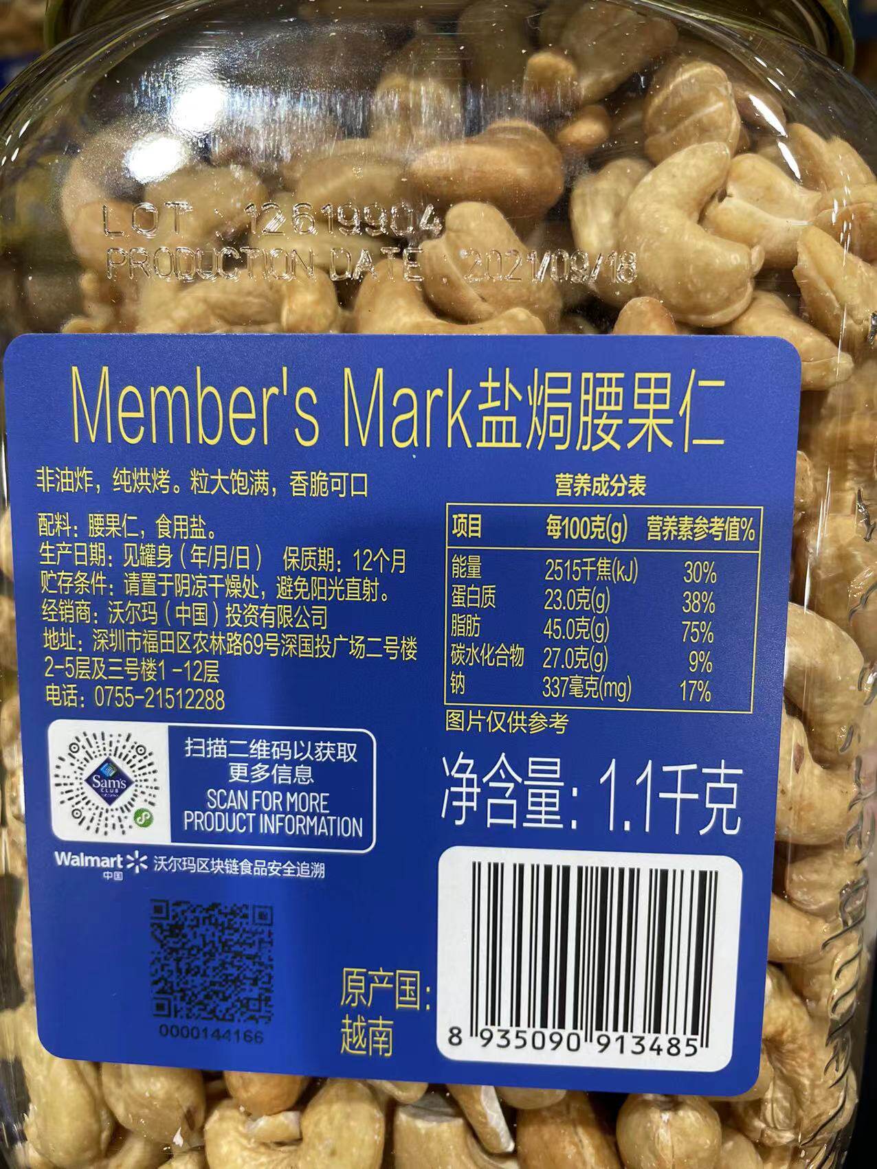 📚 上海SAM'S山姆 MM ROASTED AND SALTED CASHEWS MM盐烤腰果1.1KG