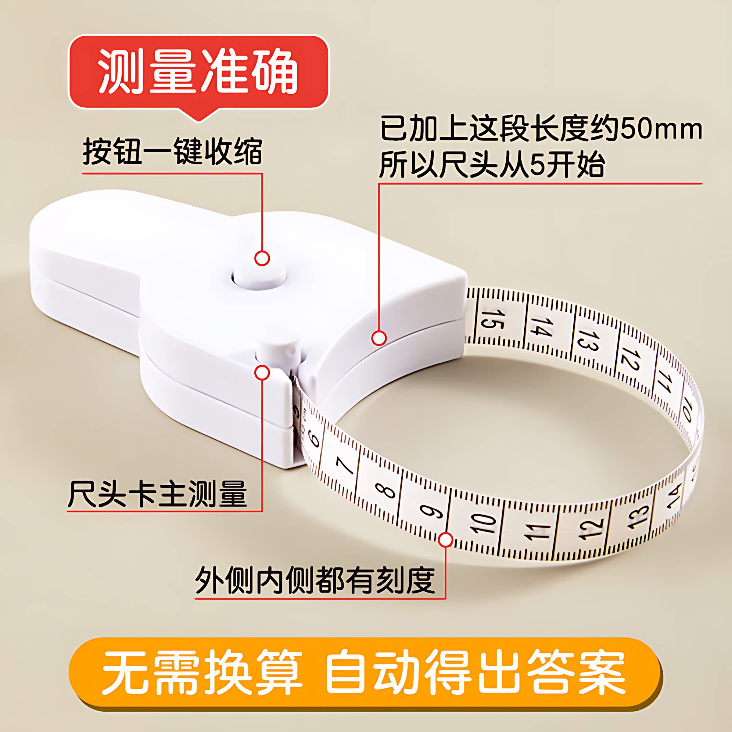 📚 围度尺测量三围尺子健身尺腰围尺量臂围胸围腿围皮尺自动收缩软尺