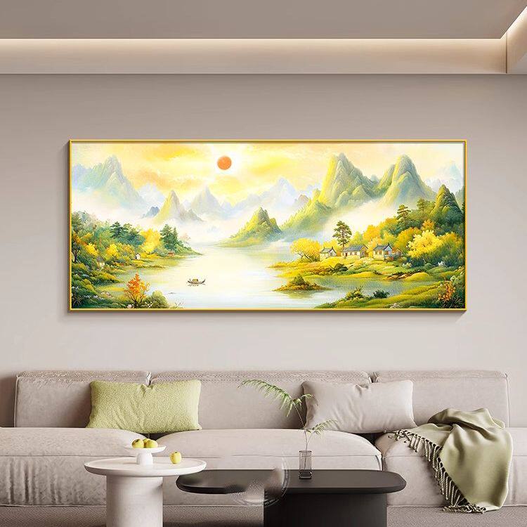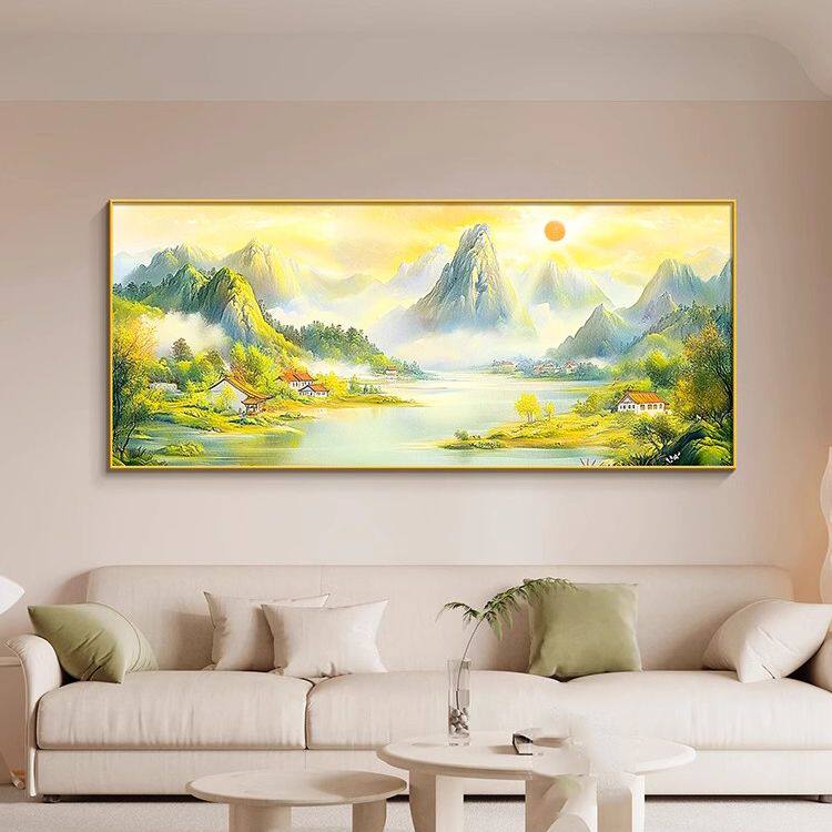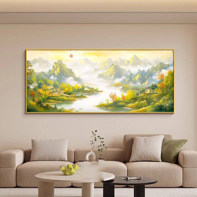 📚 靠山背景画客厅大白墙装饰画自建房沙发上面的挂画福居宝地山水画