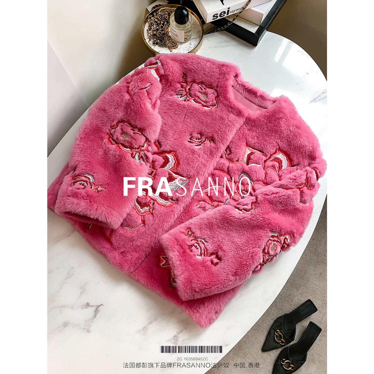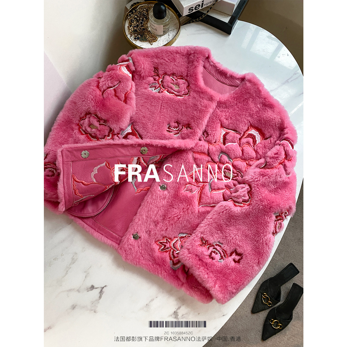📚 FRASANNO【美如花】万针重工刺绣拉贡原毛皮毛一体女皮草外套时尚