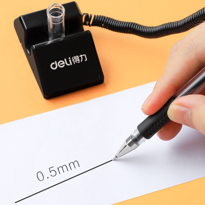 📚 得力带线台笔办公签字笔前台固定笔座粘在桌子上的笔电话线防丢笔