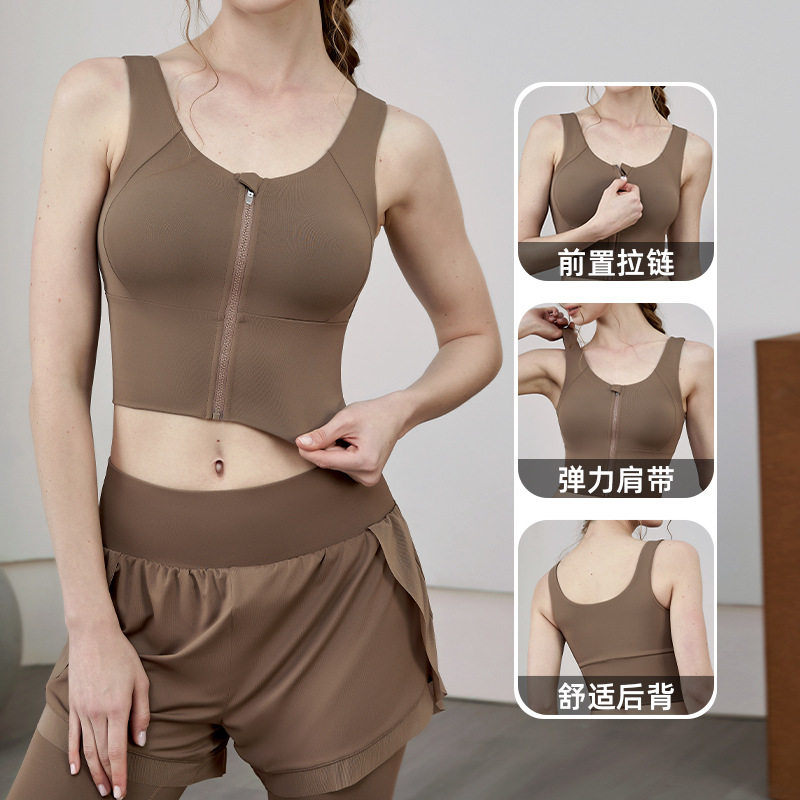 📚 前拉链运动内衣女超防震跑步高强度速干健身背心聚拢防下垂瑜伽服