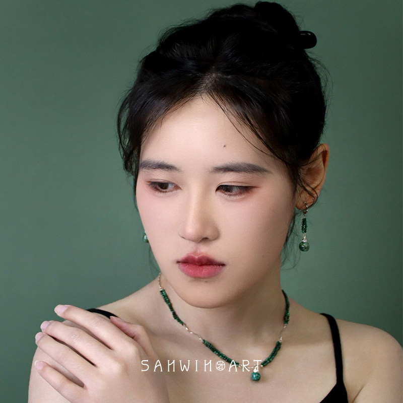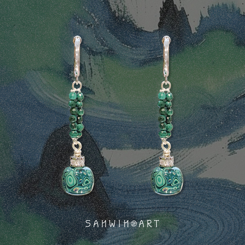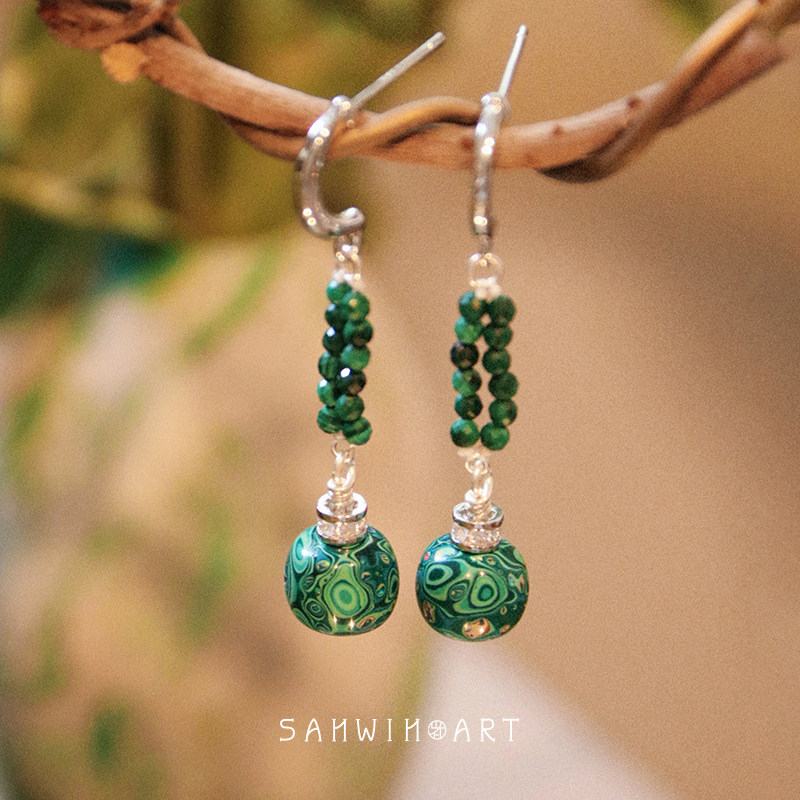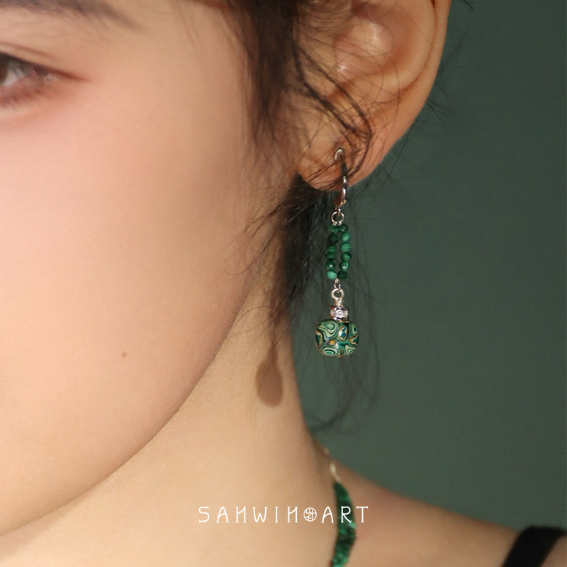 📚 山印集原创【青林】中式非遗大漆珠孔雀石耳环耳夹纯银耳针送礼物