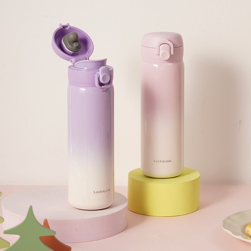 📚 乐扣乐扣保温杯陶瓷内胆覆层不锈钢渐变色高颜值保温保冷一键弹盖