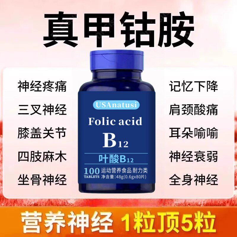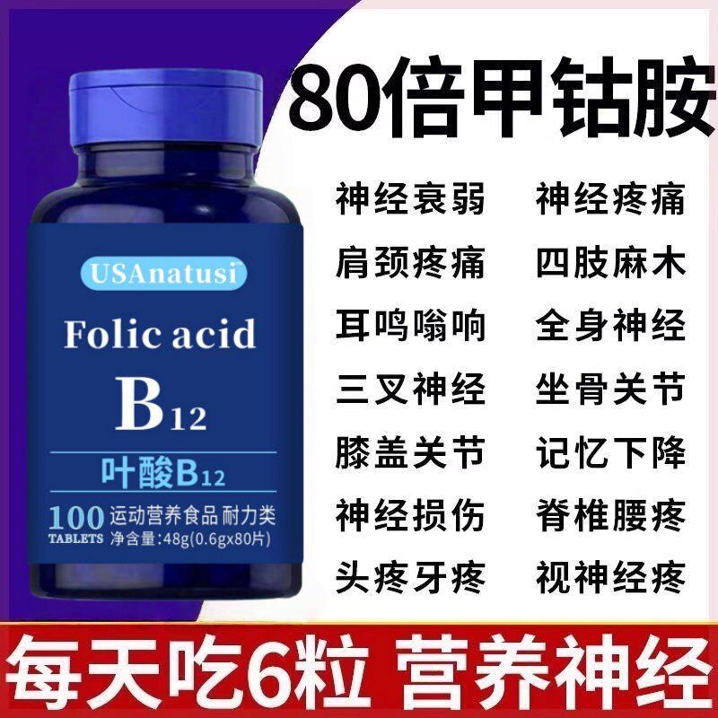 📚 美国维生素b12进口甲钴胺片营养神经损伤维生素b族修复脑叶酸正品