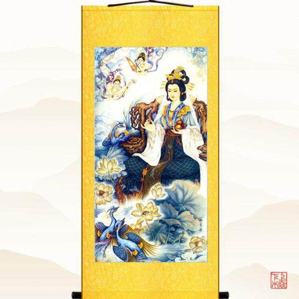 📚 西王母画像 王母娘娘挂画 金母元君丝绸装饰画卷轴画 可定制订做