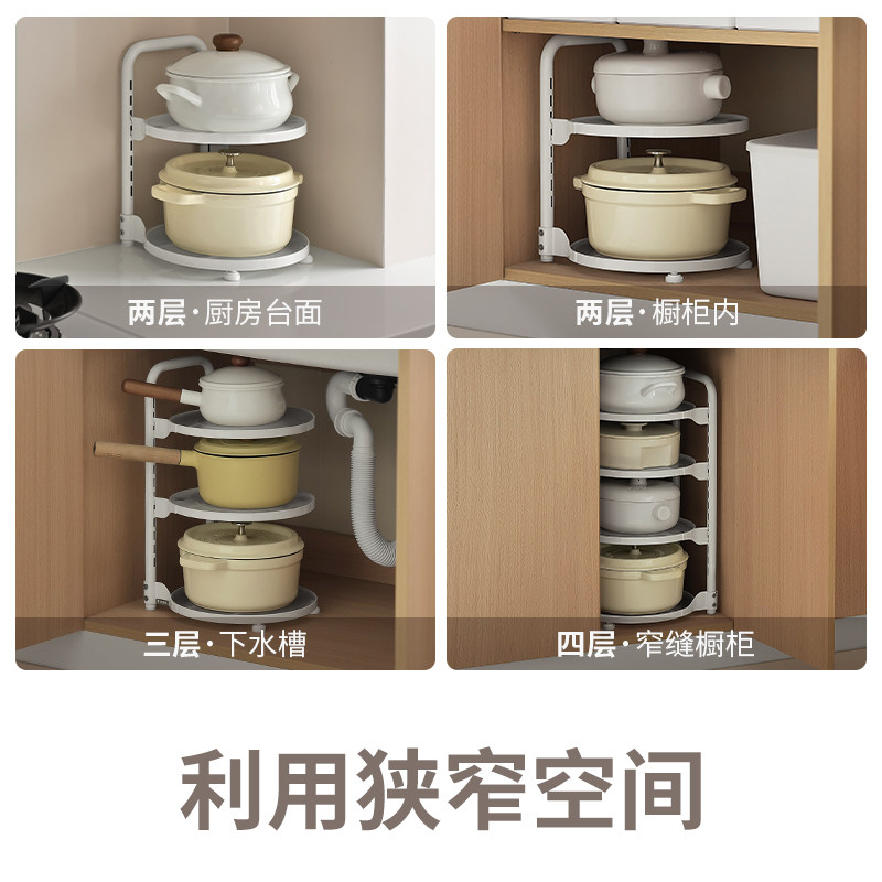 📚 懒角落置物架锅具收纳架锅架厨房分层台面多层橱柜内下水槽放锅盖