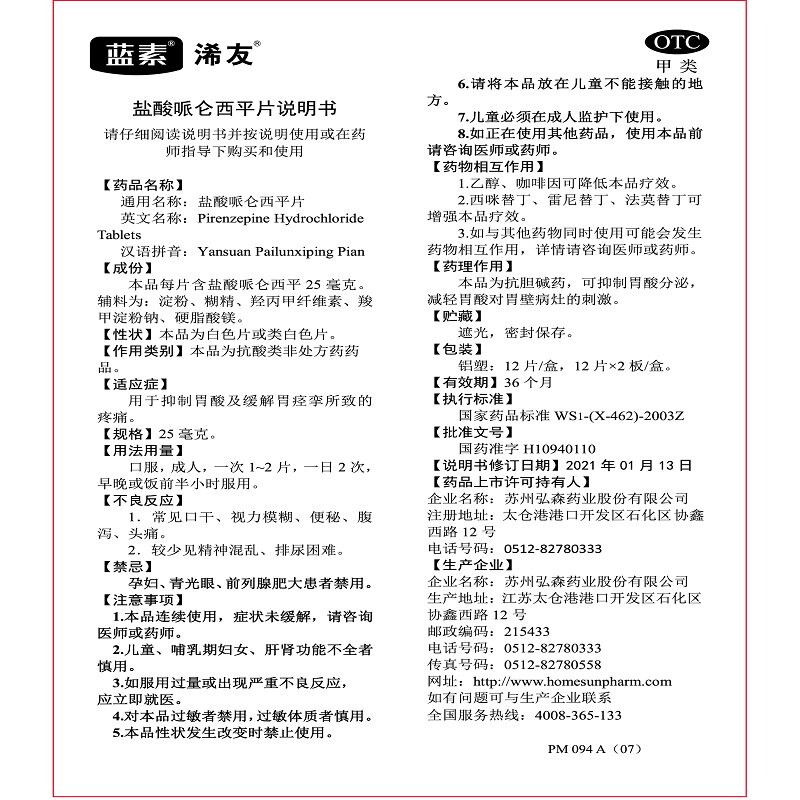 📚 蓝素盐酸哌仑西平片正品胃药官方旗舰店药片胃溃疡胃酸胃黏膜健