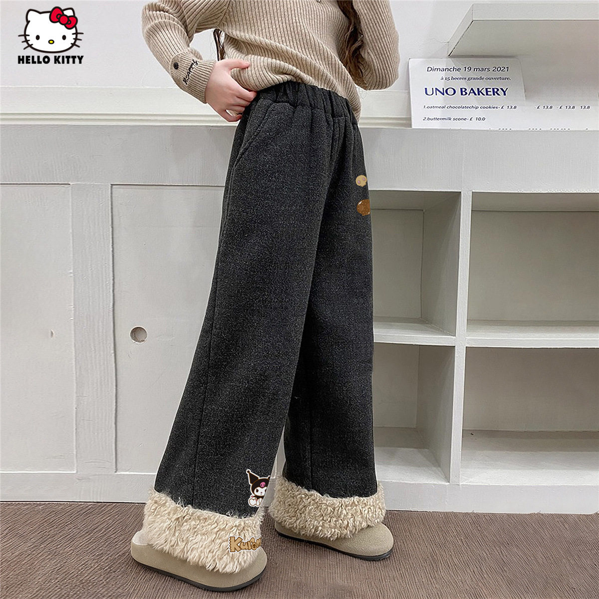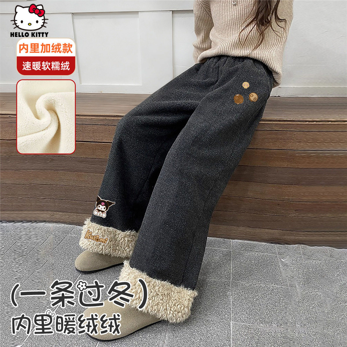 📚 HelloKitty凯蒂猫女童加绒加厚牛仔裤大童阔腿裤保暖裤子冬季长裤
