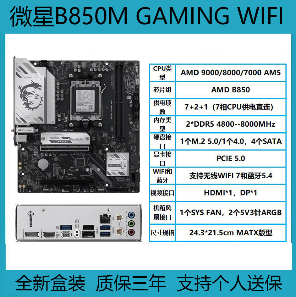 📚 全新微星B650M/B850M GAMING PLUS WIFI迫击炮AM5 DDR5电脑主板