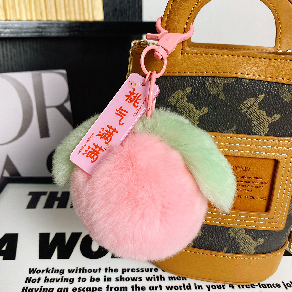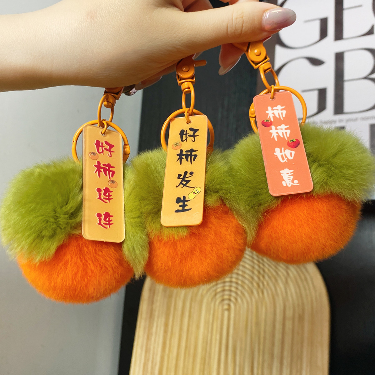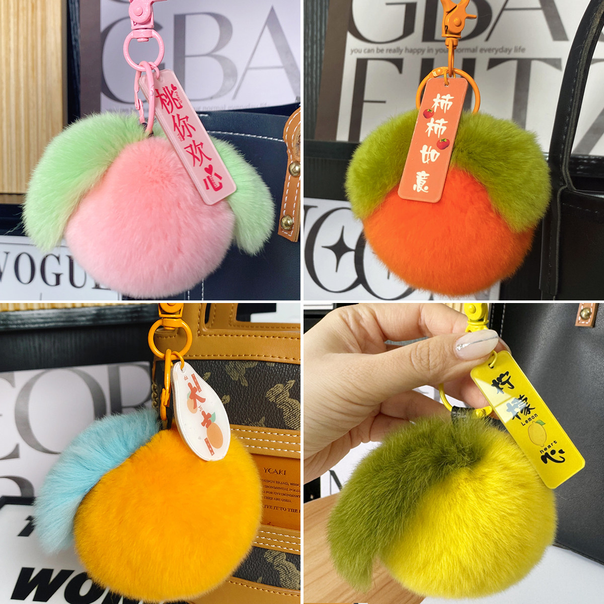 📚 真獭兔毛球水果系列挂饰柿子玩偶葡萄钥匙扣苹果书包挂件桃子礼物