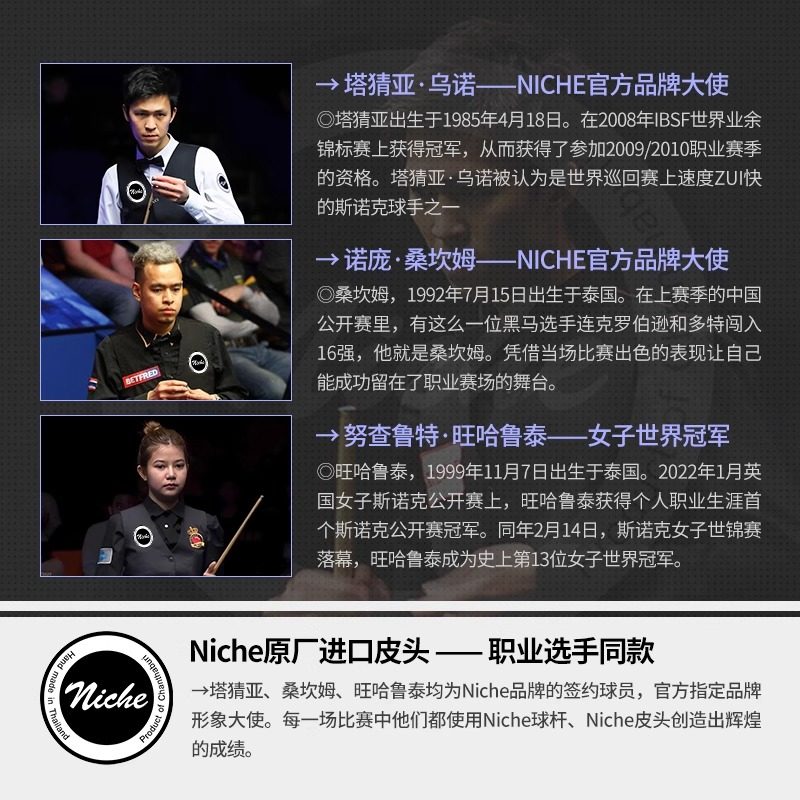 📚 Niche皮头泰国手工职业斯诺克黑八皮头杆头中式黑八小杆头通用