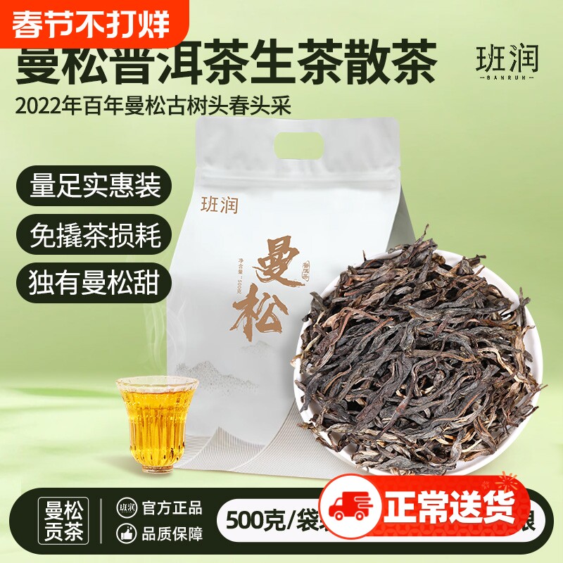 📚 2022年贡茶普洱茶生茶散茶班润曼松春茶古树茶生普散装茶叶大叶