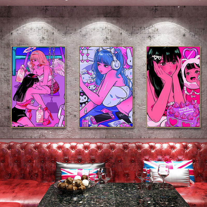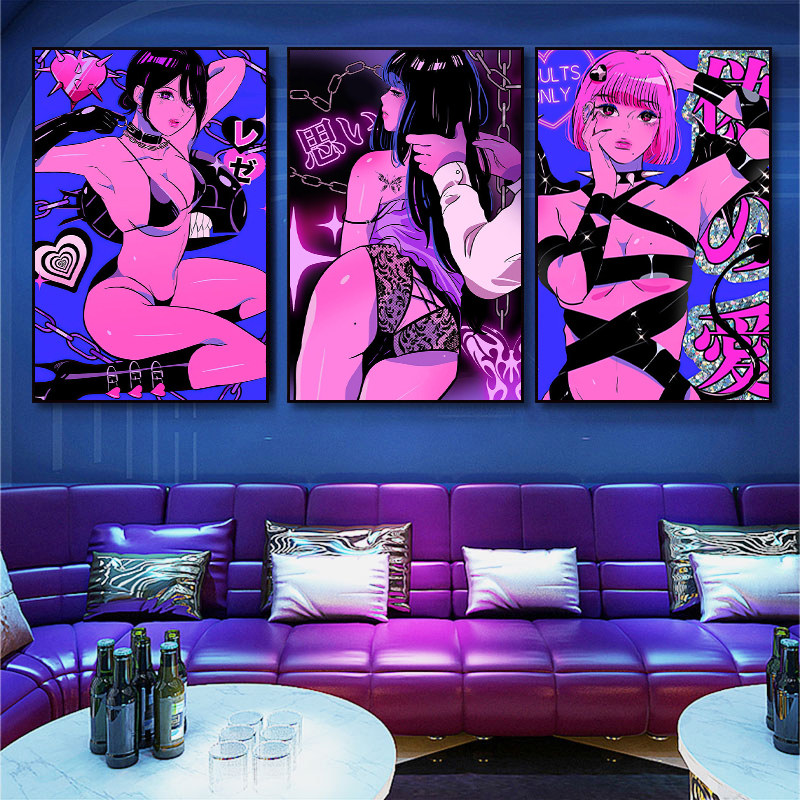 📚 酒吧装饰画酒店赛博朋克KTV发光画霓虹灯挂画二次元动漫粉色壁画