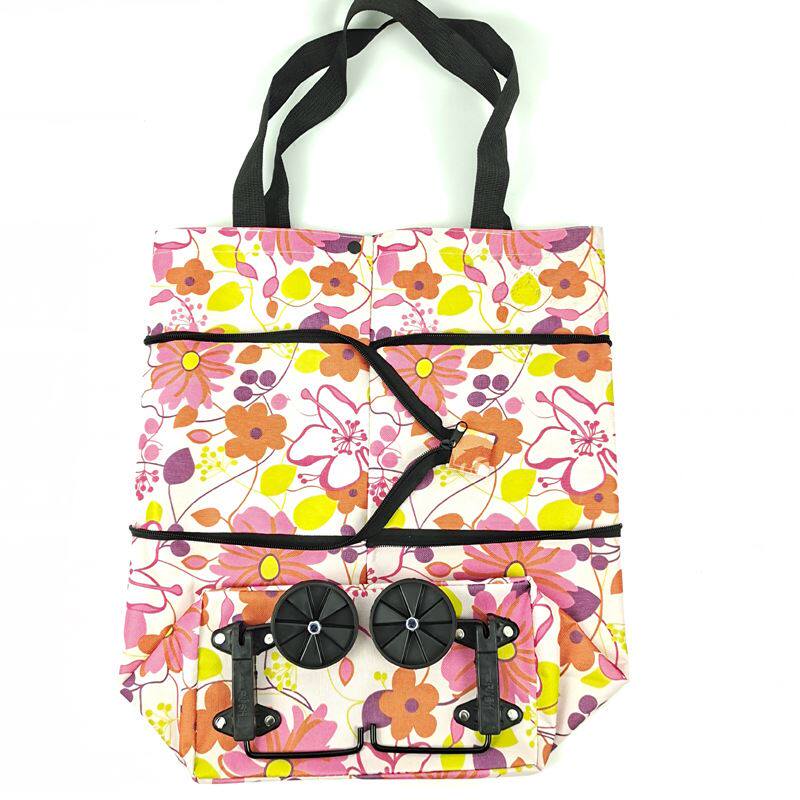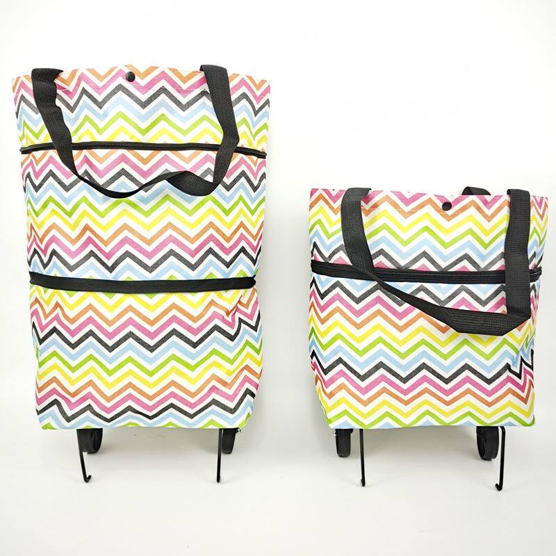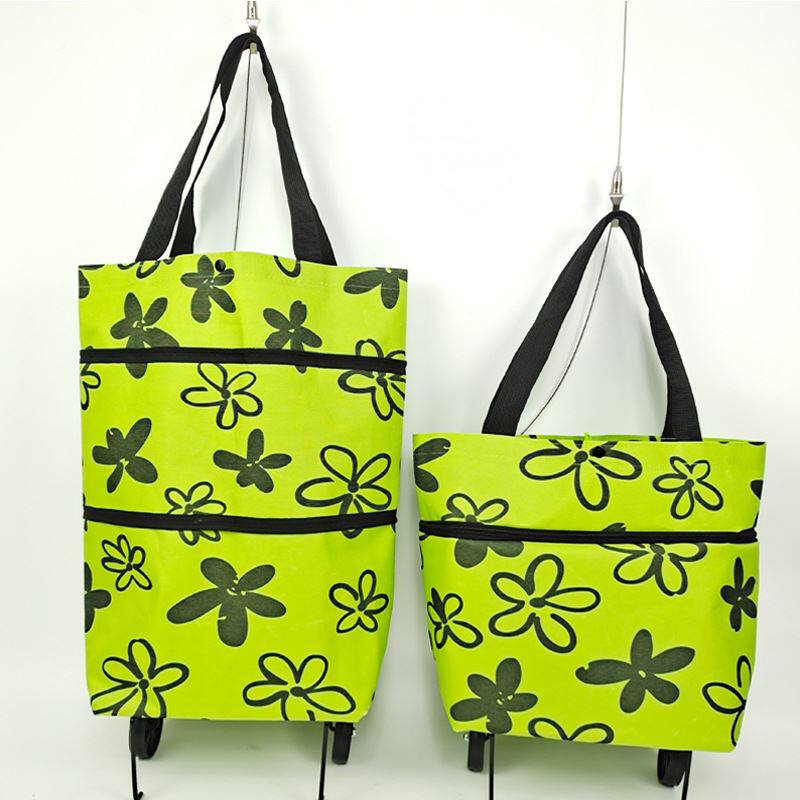 📚 现货拖轮包购物车折叠购物袋花色旅行两用购物袋牛津布滚轮包