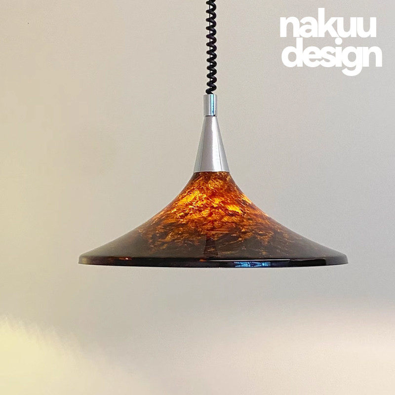 📚 中古美式琥珀彩绘吊灯升降客厅餐厅岛台书房设计师可伸缩复古氛围