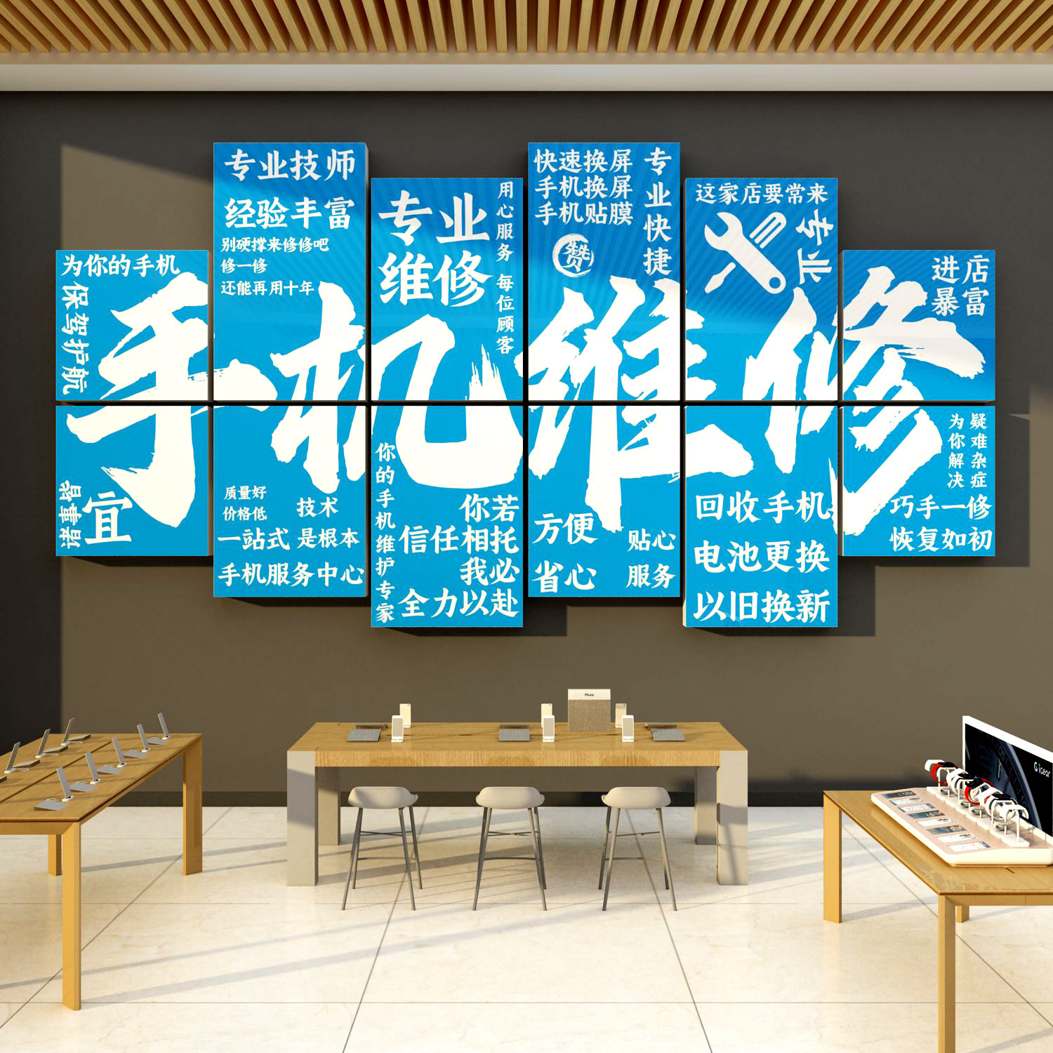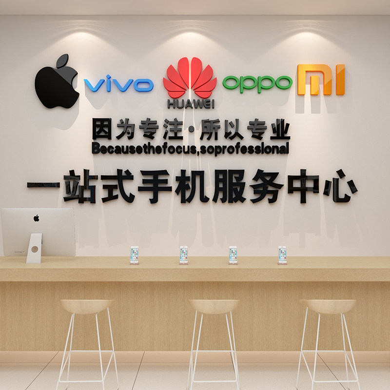 📚 二手机店墙面装饰海报布置形象背场景柜台贴纸维修广告示牌回收台