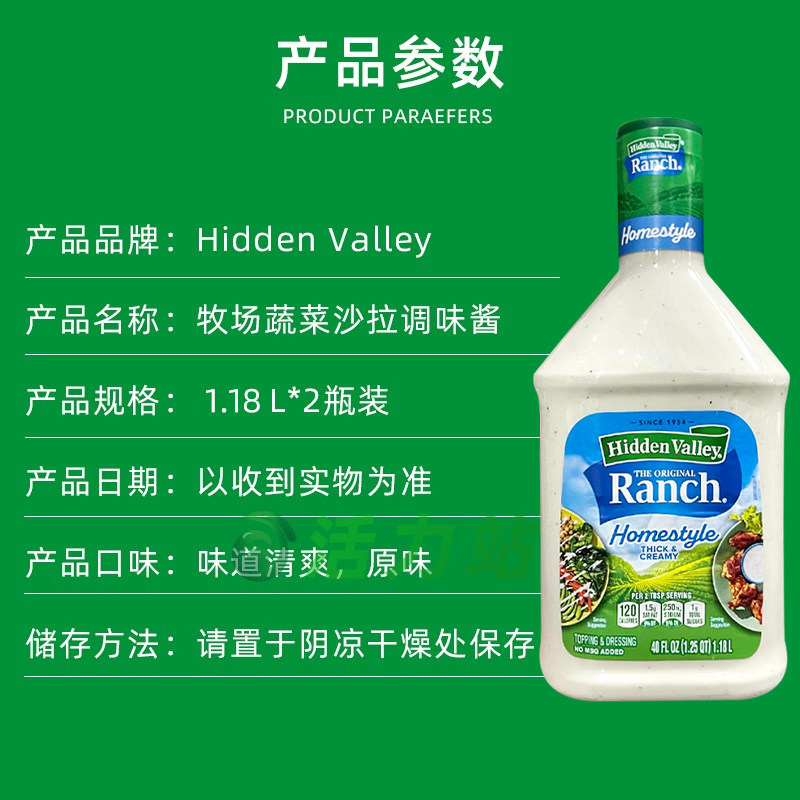 📚 现货 美国Hidden Valley ranch 牧场蔬菜色拉沙拉烧烤调味酱1.18L