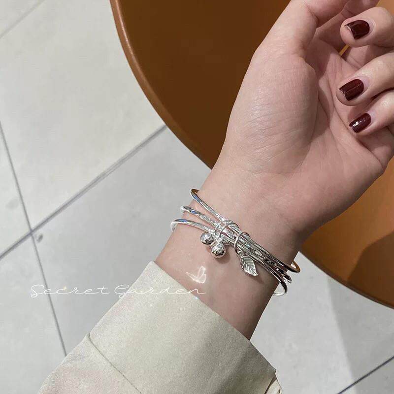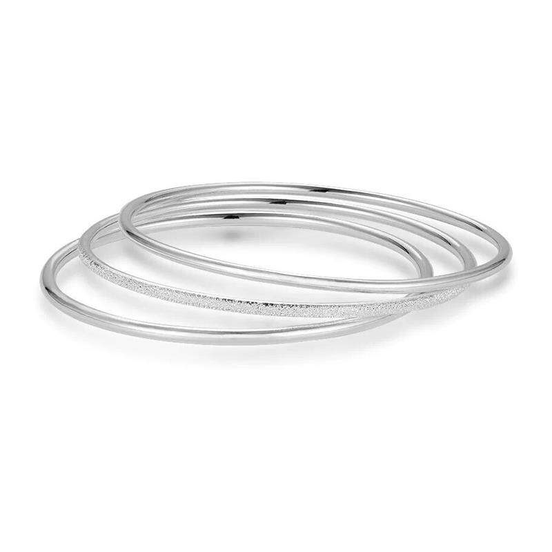 📚 三生三世银手镯女纯银实心磨砂光面手环闭口三圈足银镯子送礼