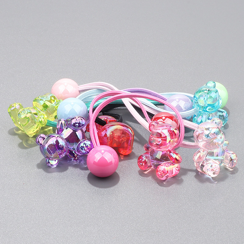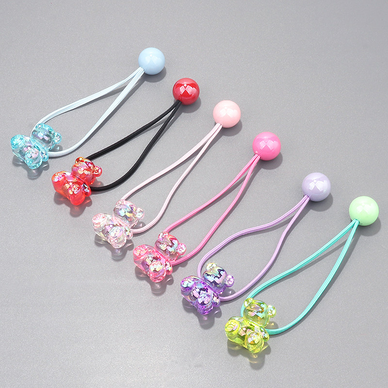 📚 新款儿童弹力亮闪小熊绕绕皮筋扎高马尾女童不伤发长双头发绳发圈