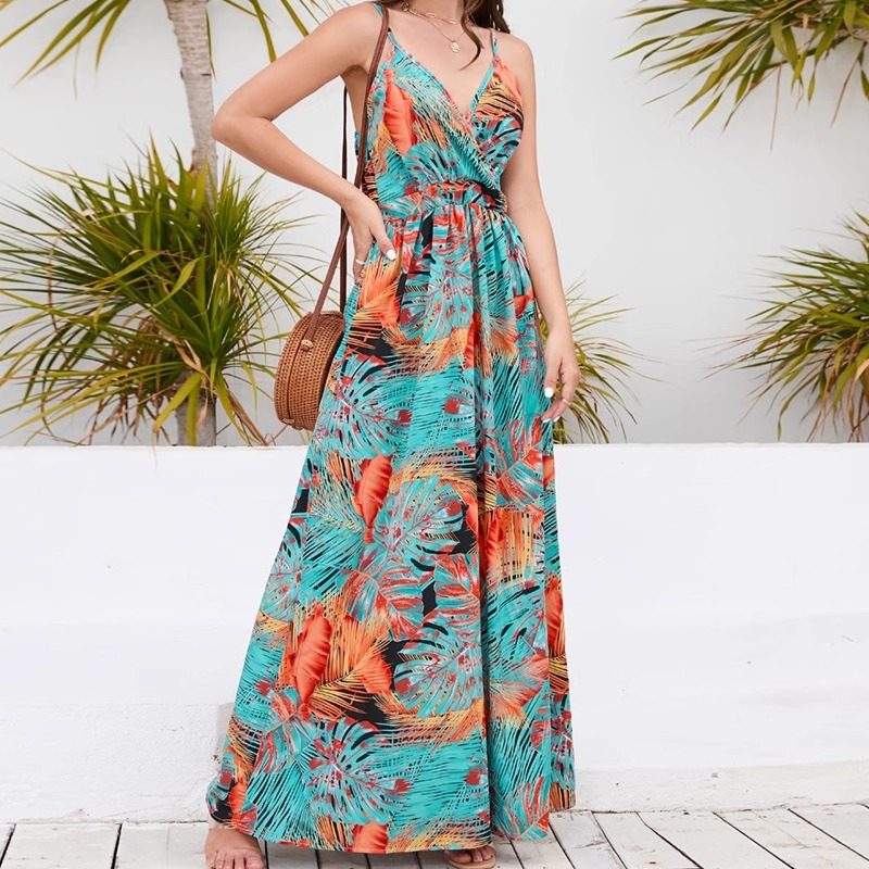 📚 性感V领吊带印花连衣裙 Sexy V-neck halter print fitted dress